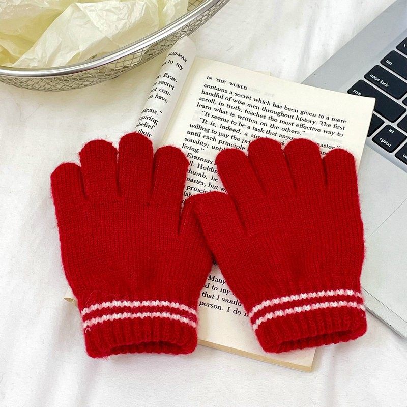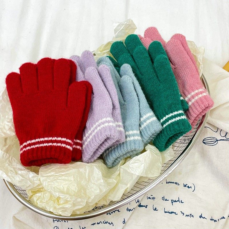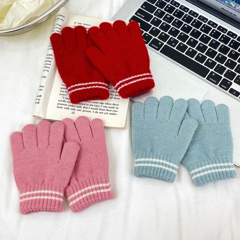 儿童冬季条纹针织分指手套2026新款男女童宝宝防寒保暖五指手套