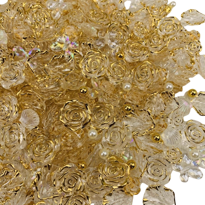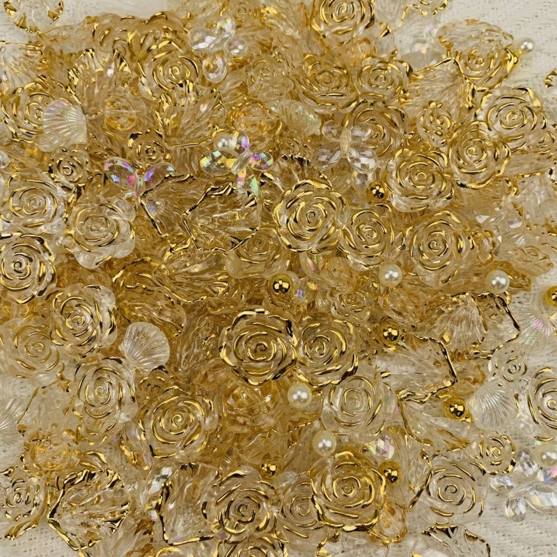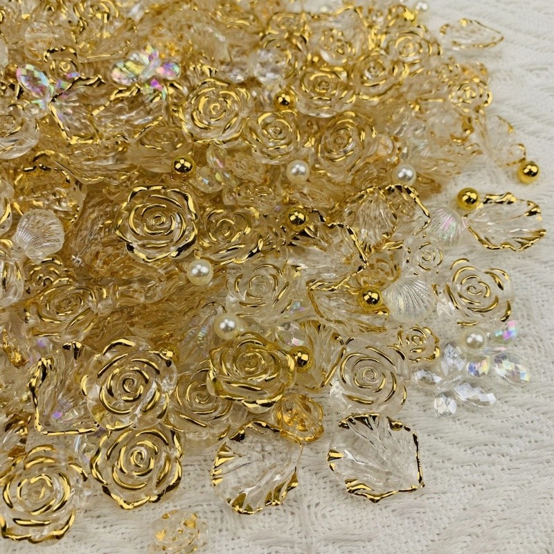 配件玫瑰花diy手链混装饰品透明装饰物金边花朵发夹手机壳