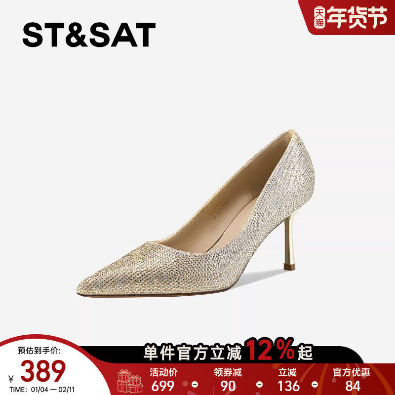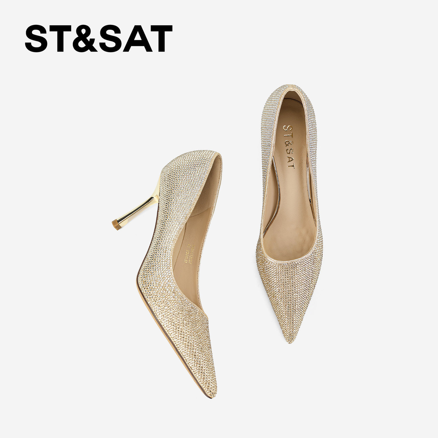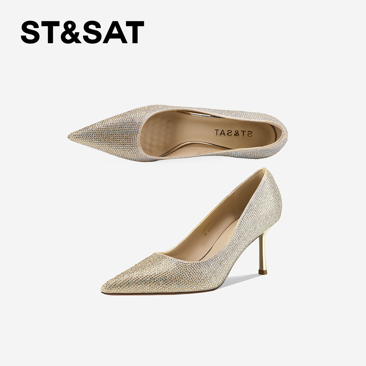星期六水钻高跟鞋女2025春秋新款尖头浅口细跟单鞋婚鞋伴娘婚宴鞋
