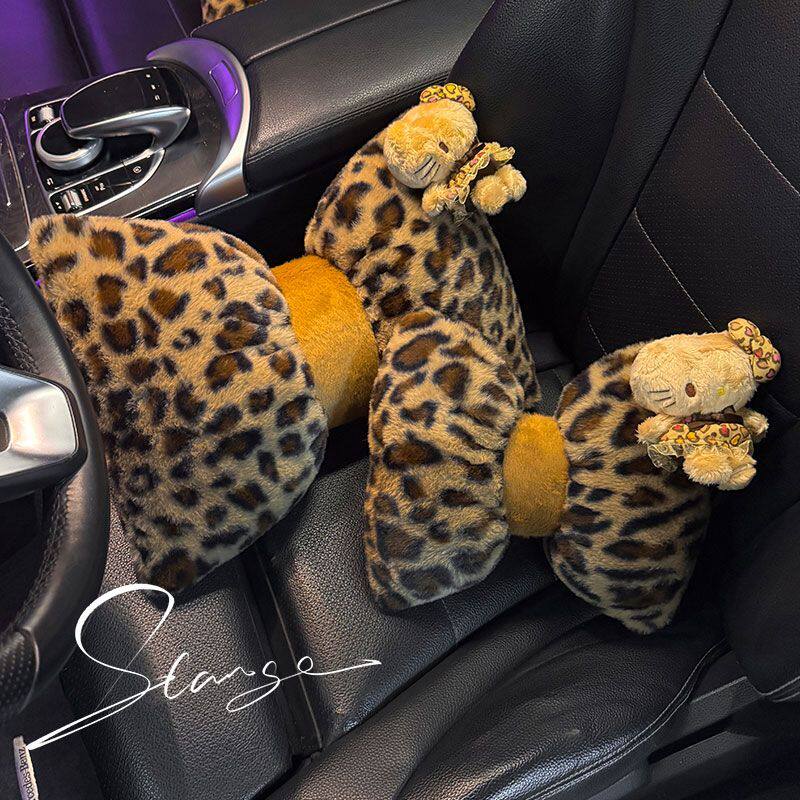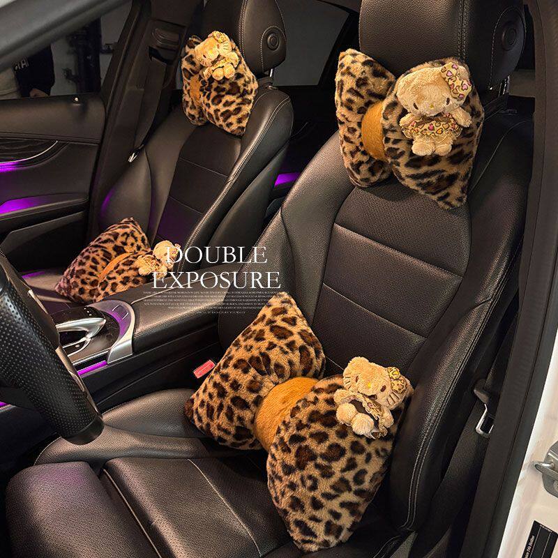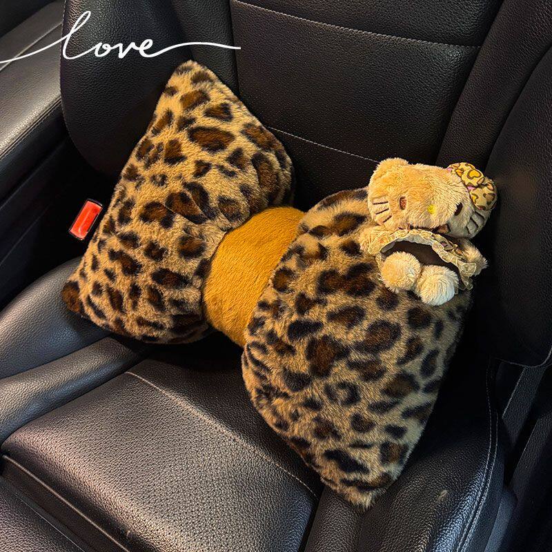 车载高级女生车内枕头腰靠汽车头枕护颈座椅豹纹靠枕舒适豹纹kt款