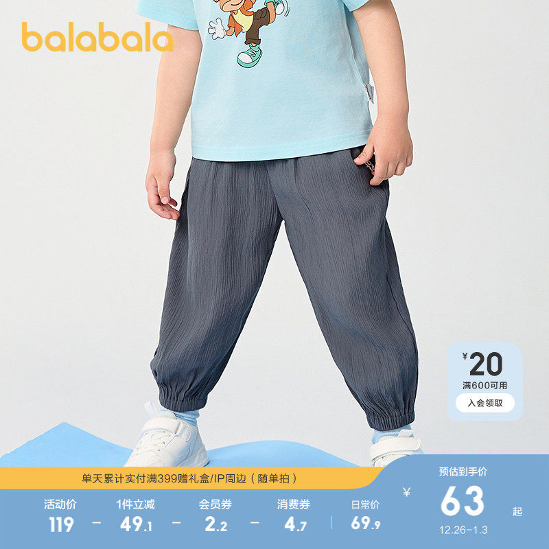 巴拉巴拉童装儿童裤子男童防蚊裤夏季2025新宝宝长裤女童休闲裤潮