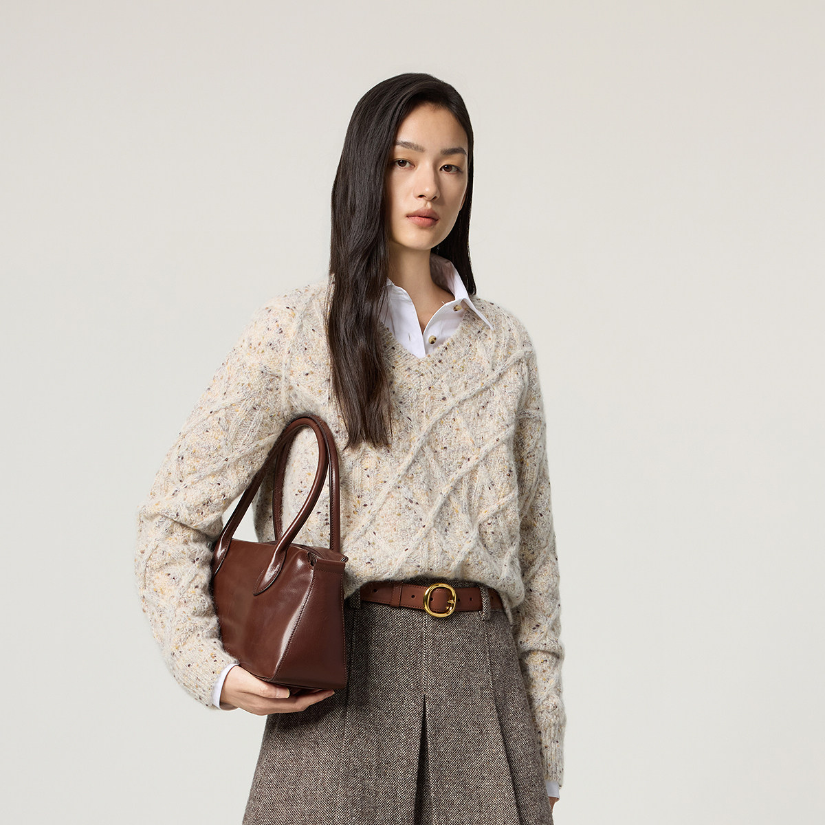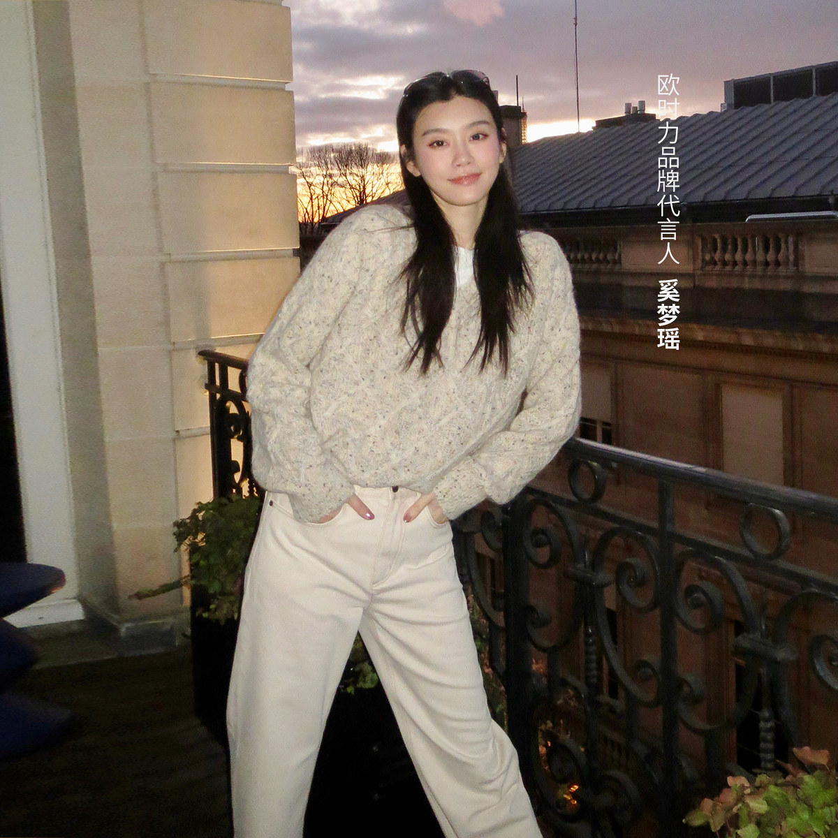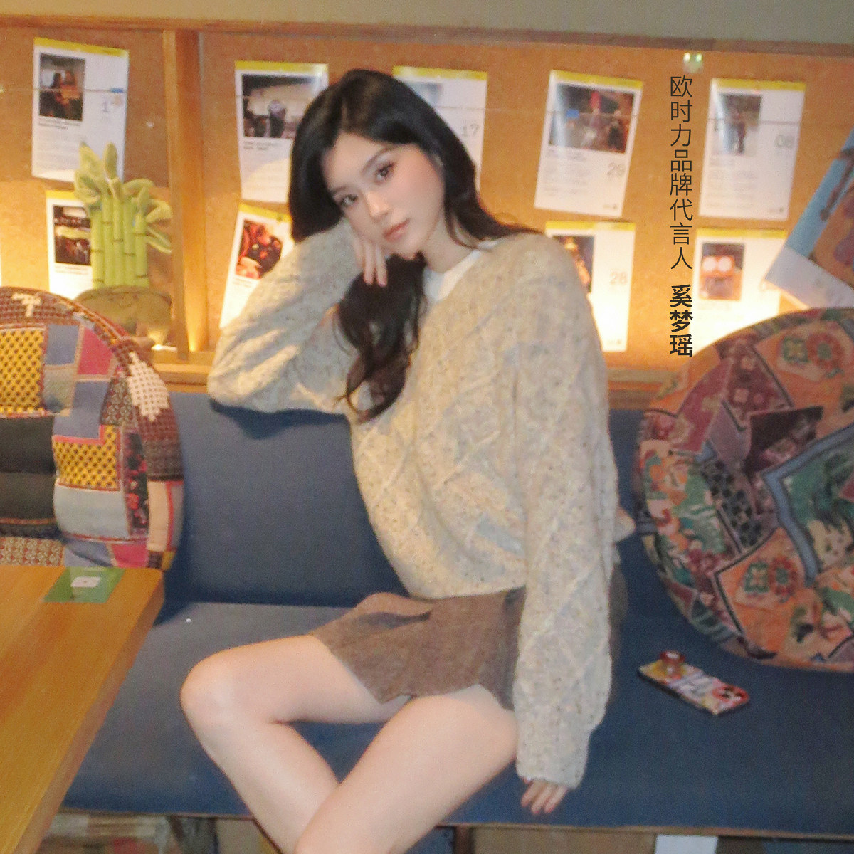 【新品】奚梦瑶同款 OCHIRLY欧时力 羊毛马海毛V领菱格毛衣2025冬