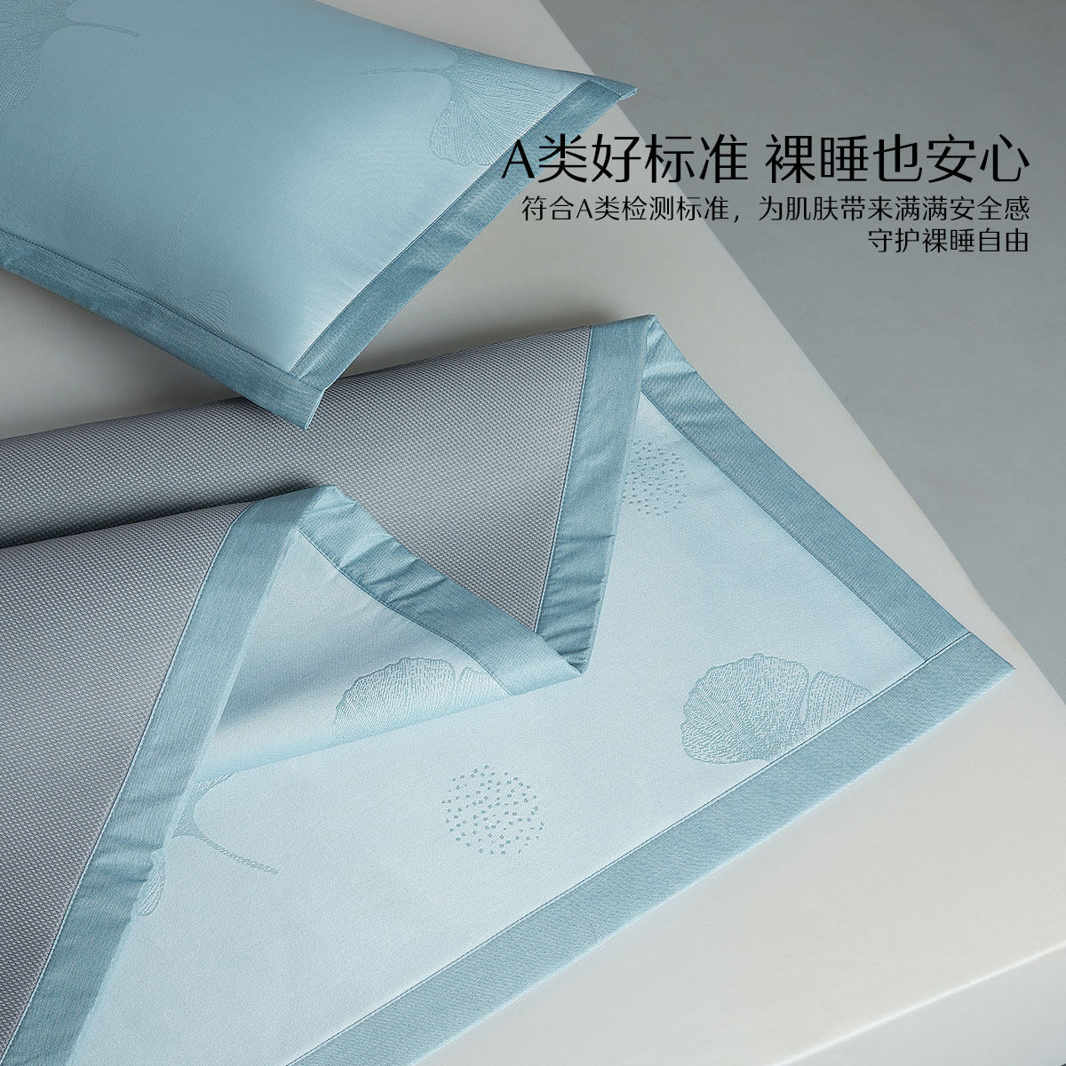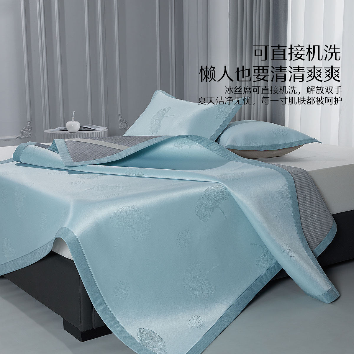 水星家纺450D提花冰丝席三件套A类可水洗凉感席子夏季家用床品