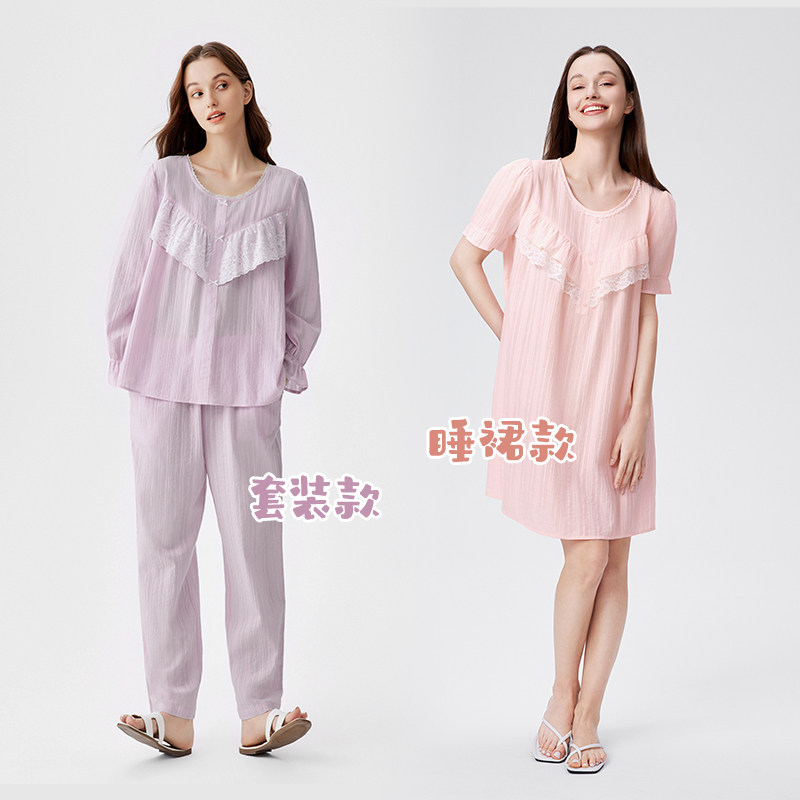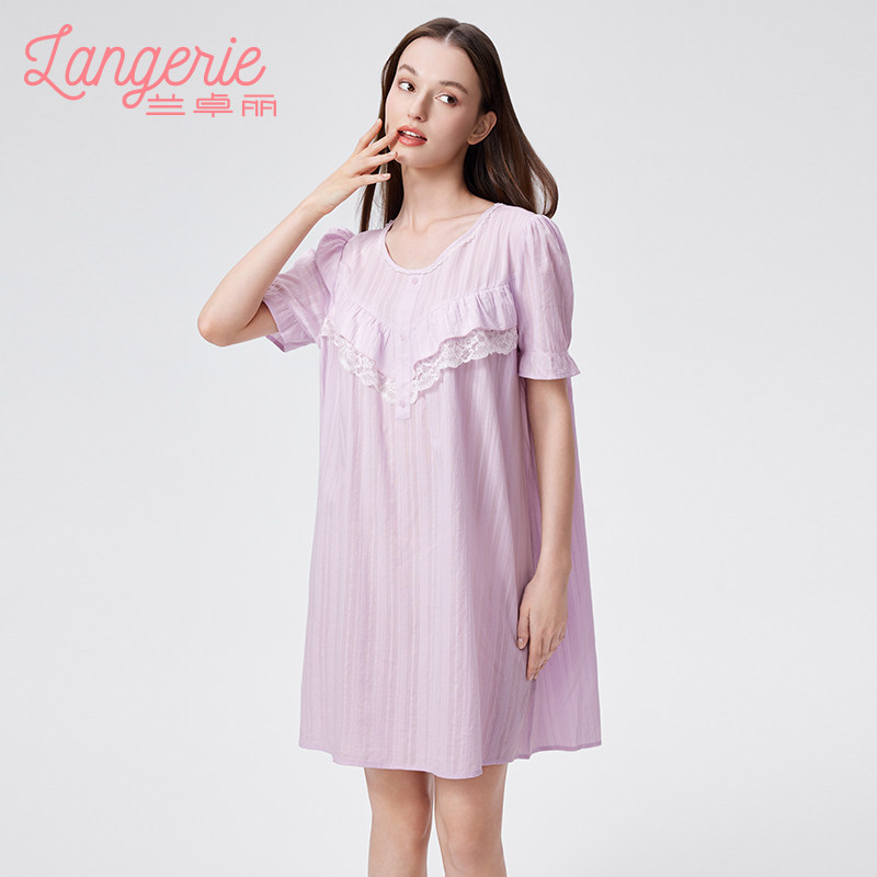 兰卓丽纯棉短袖睡裙女家居服防凸点睡衣宽松舒适透气可外穿夏季薄