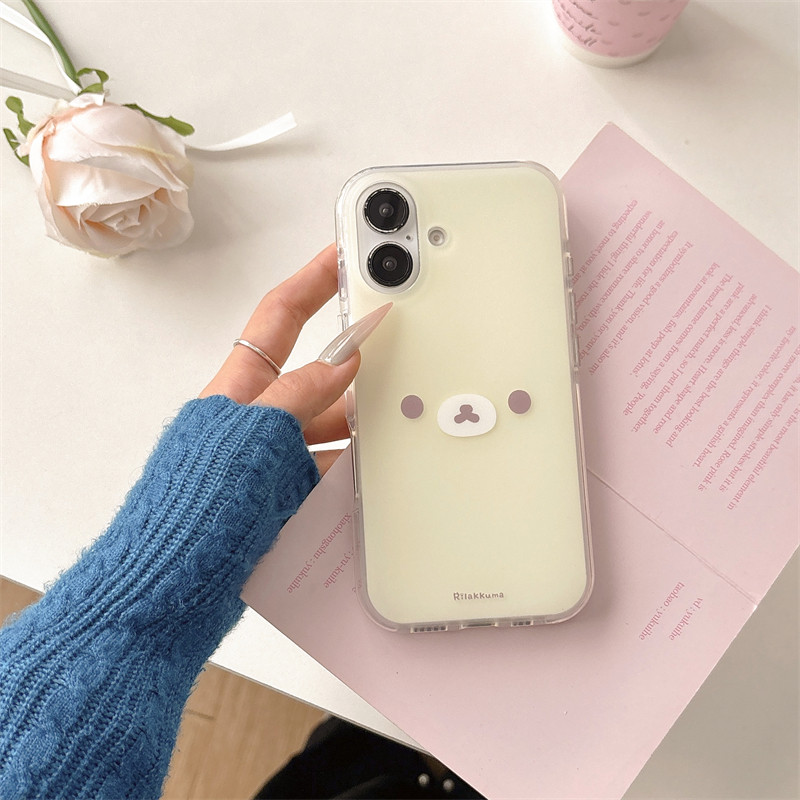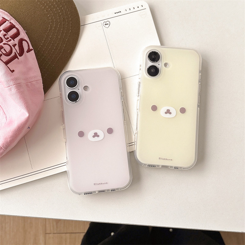 日韩ins可爱甜美少女心卡通情侣款大脸表情小熊17promax适用iphone16pro粉黄双层磨砂14手机壳苹果13防摔15硬