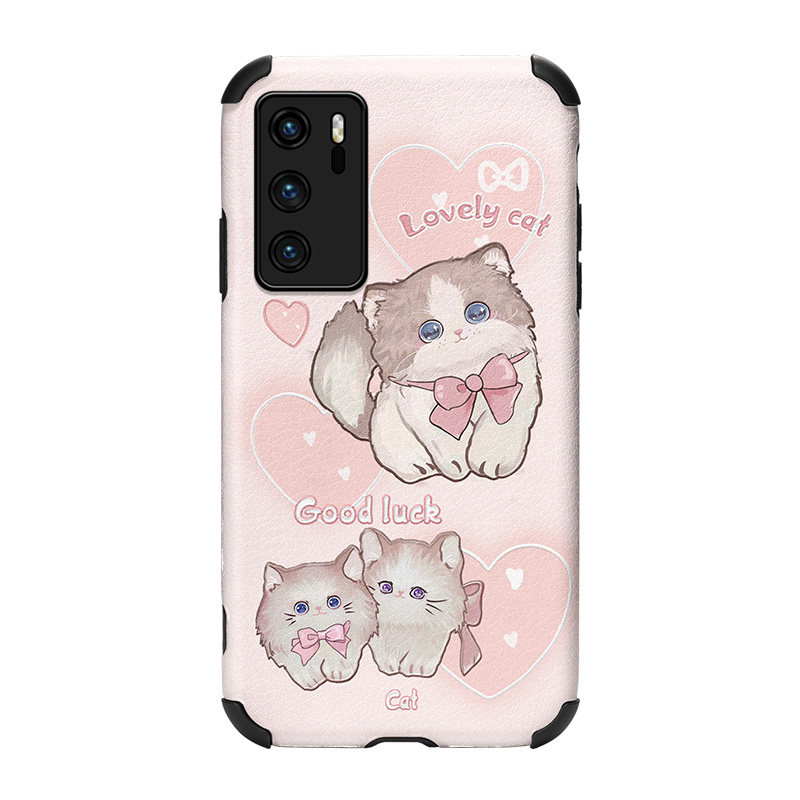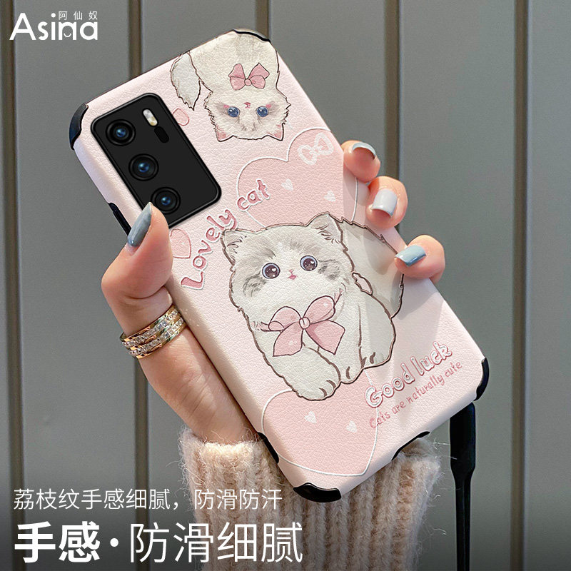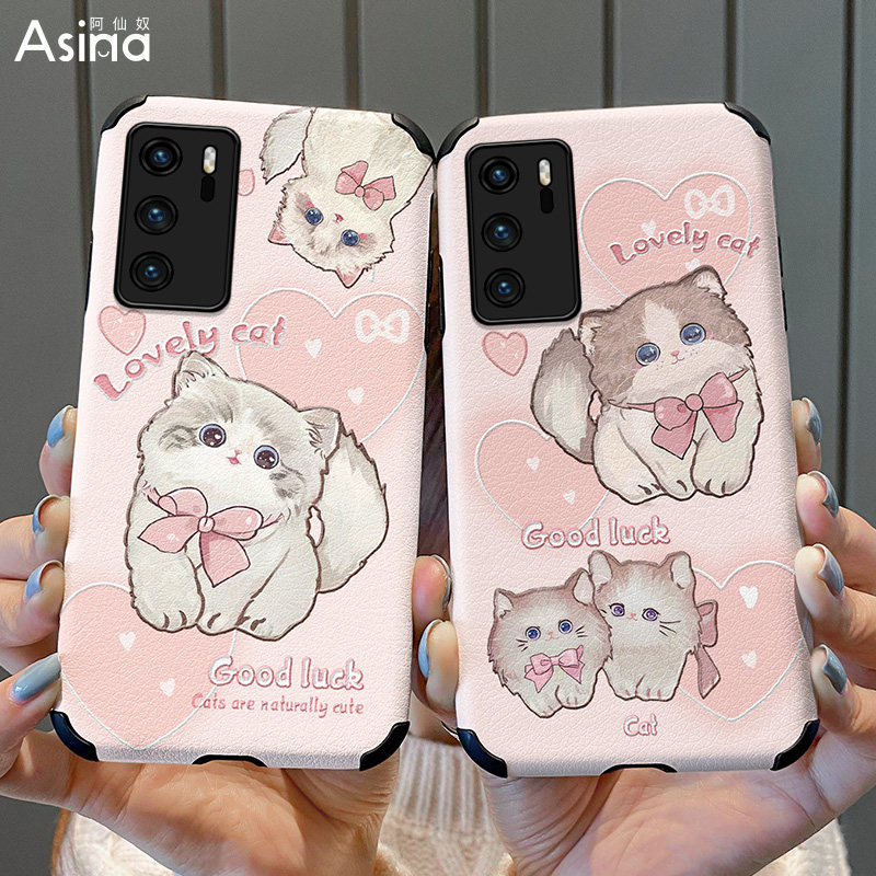 甜心猫咪适用华为p40手机壳p50pro女款p30可爱p20全包p40pro+新款闺蜜创意原创卡通网红ins风少女新品防摔保