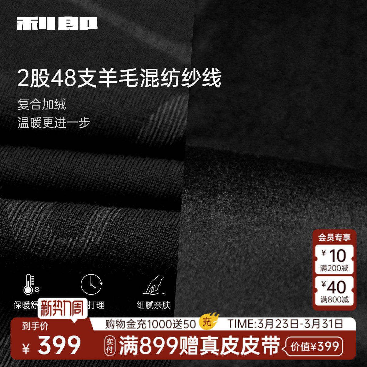 【王一博同款】蕉内热皮502+男士锁温羊毛圆领毛衣羊毛衫打底衫冬