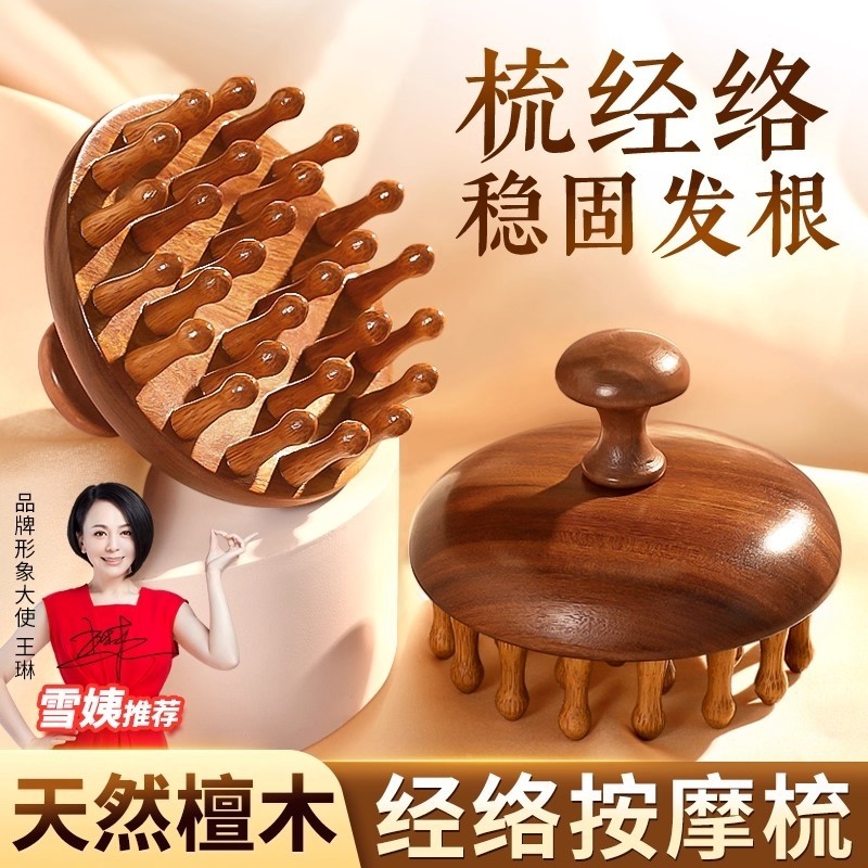 天然檀木按摩梳子头皮经络养发小木梳疗脱发梳头防刷头部疏通神器