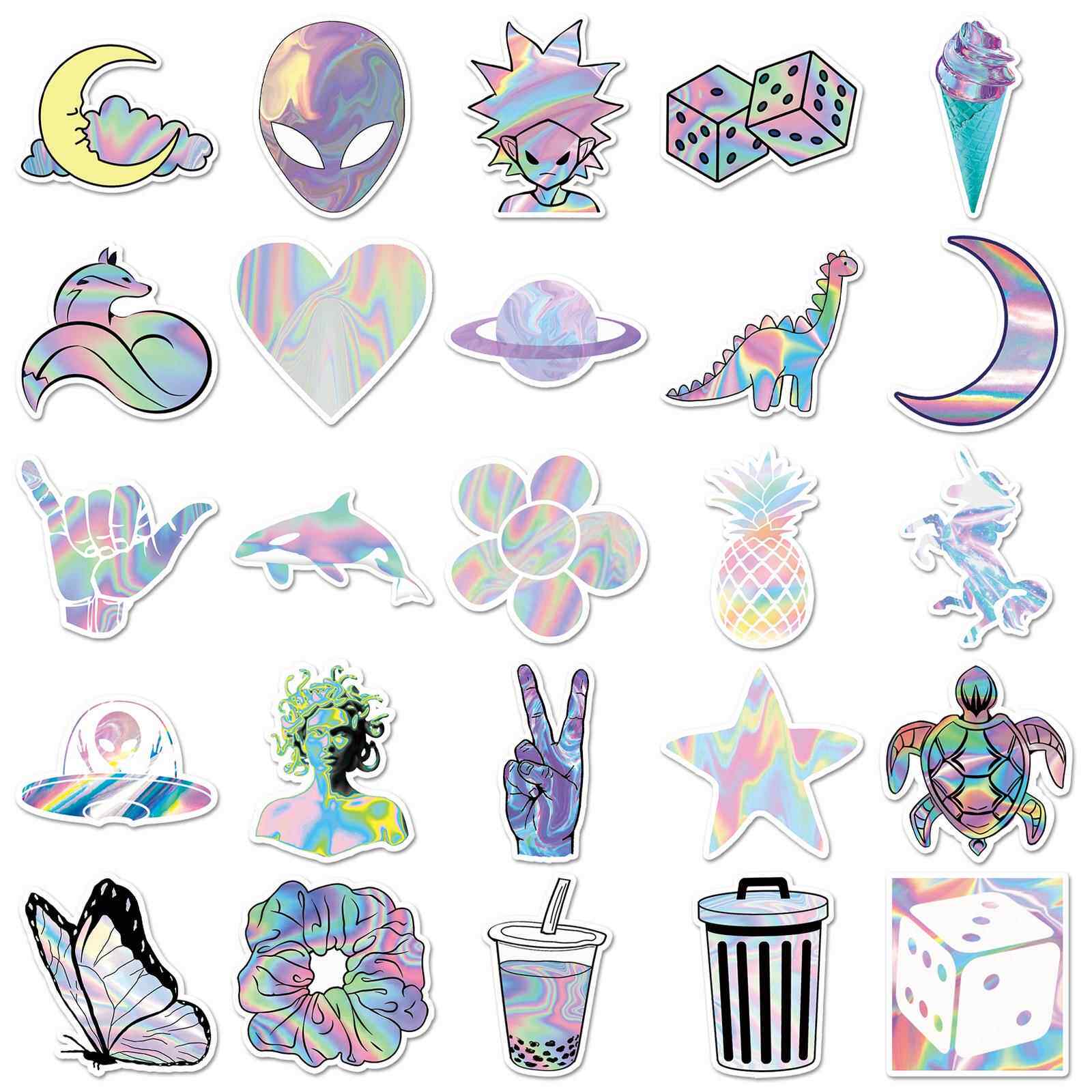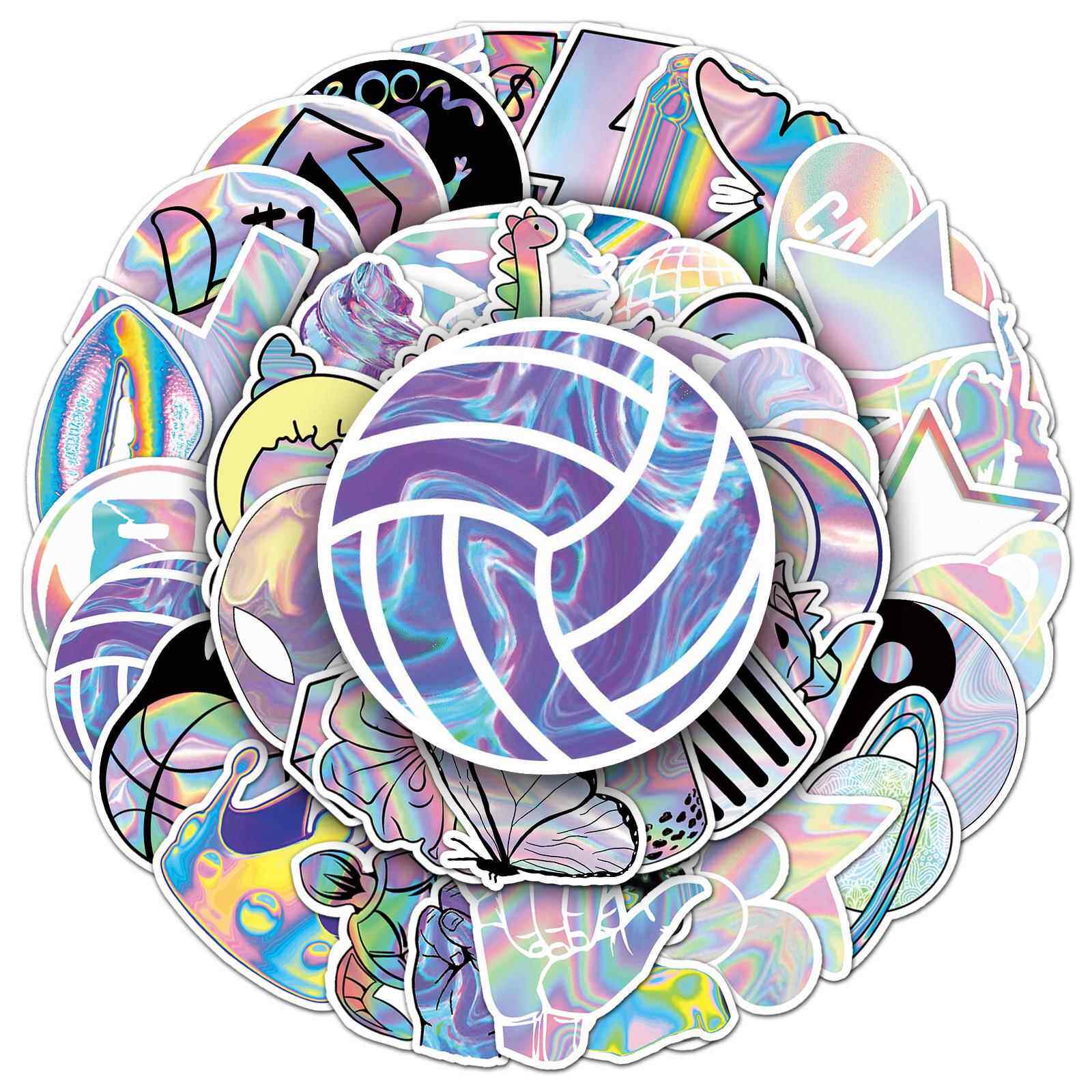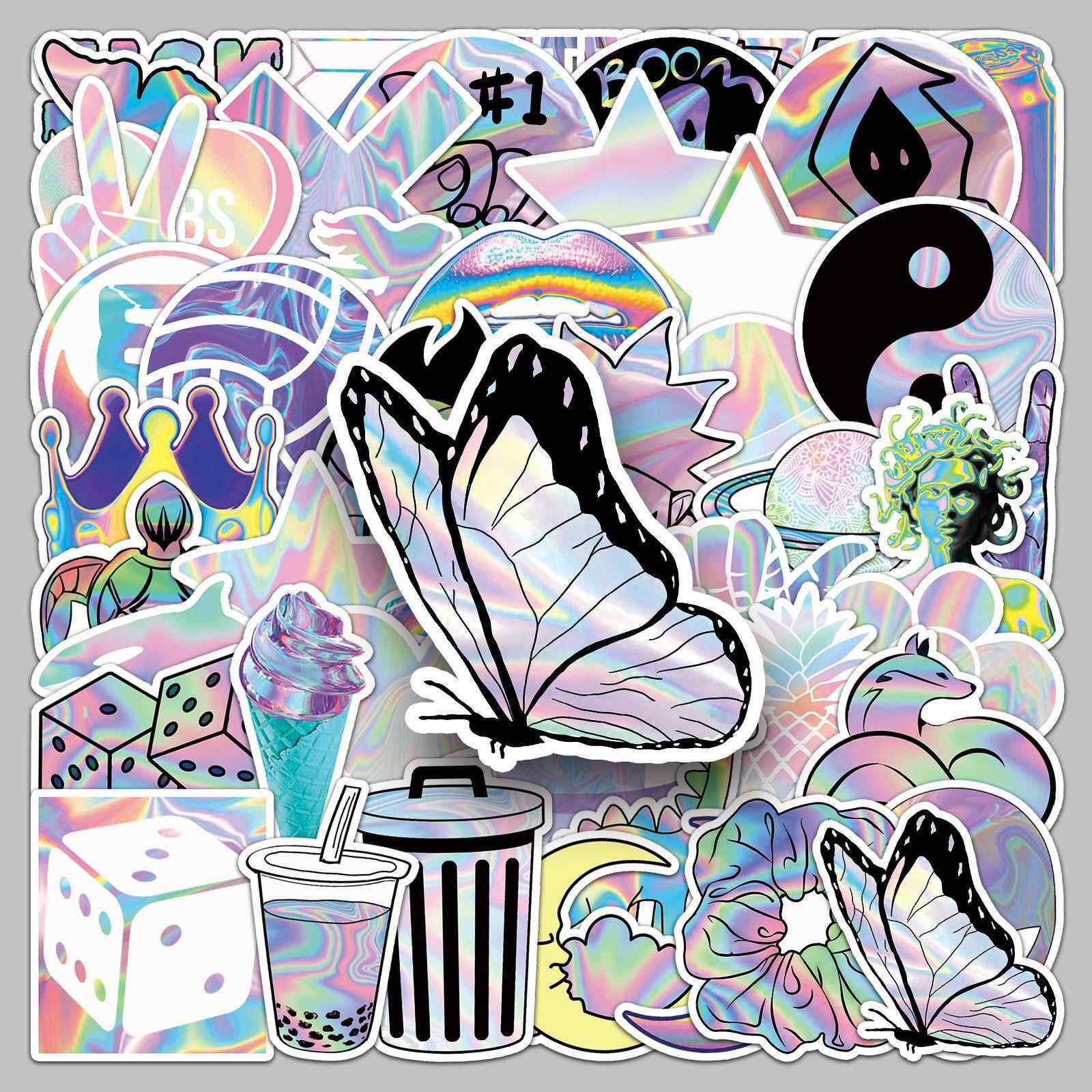 直销新款50张镭射创意潮流涂鸦贴纸 行李箱滑板车电脑平板卡通装