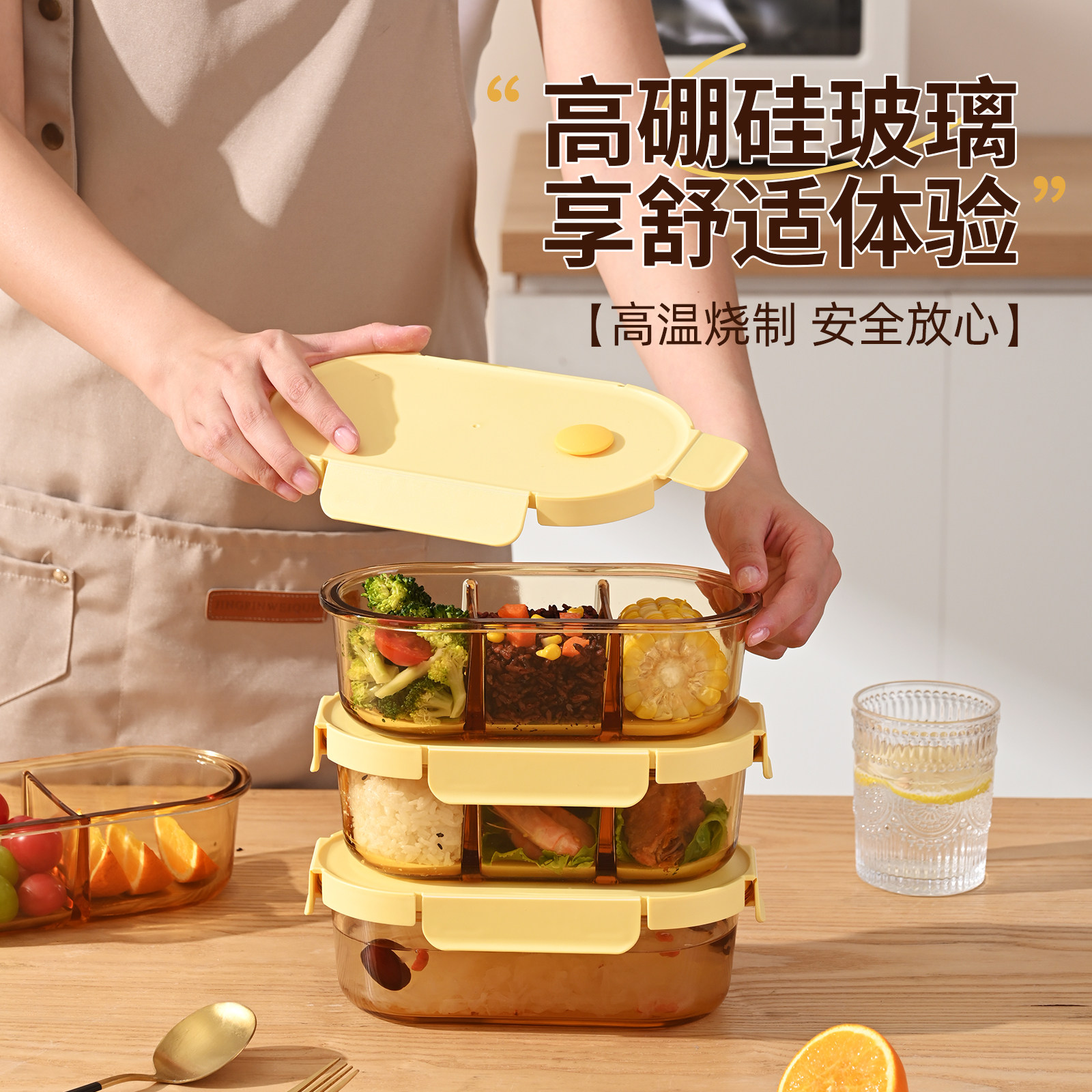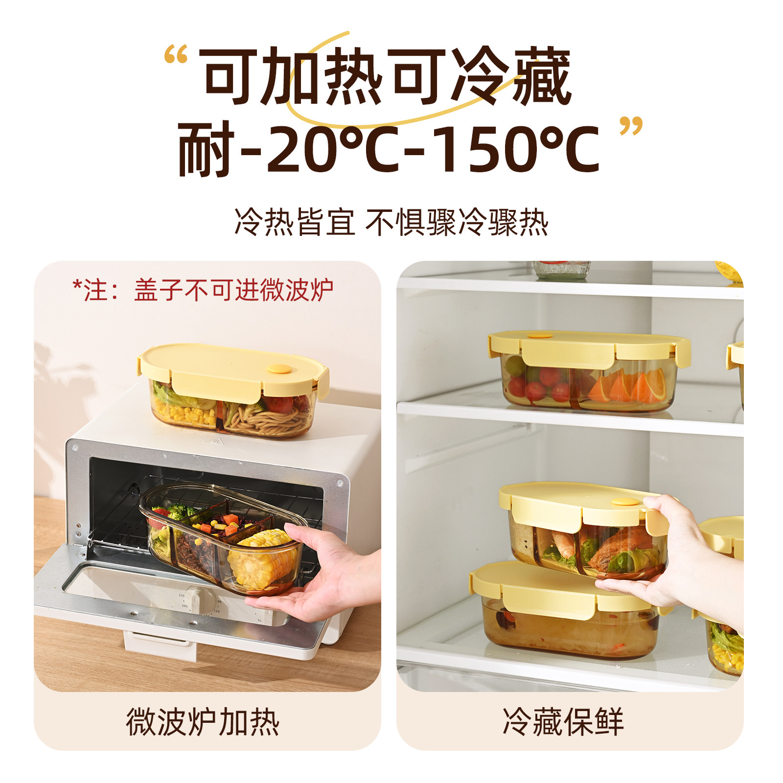 玻璃饭盒微波炉加热专用学生上班族带饭餐盒保鲜盒分隔密封便当碗