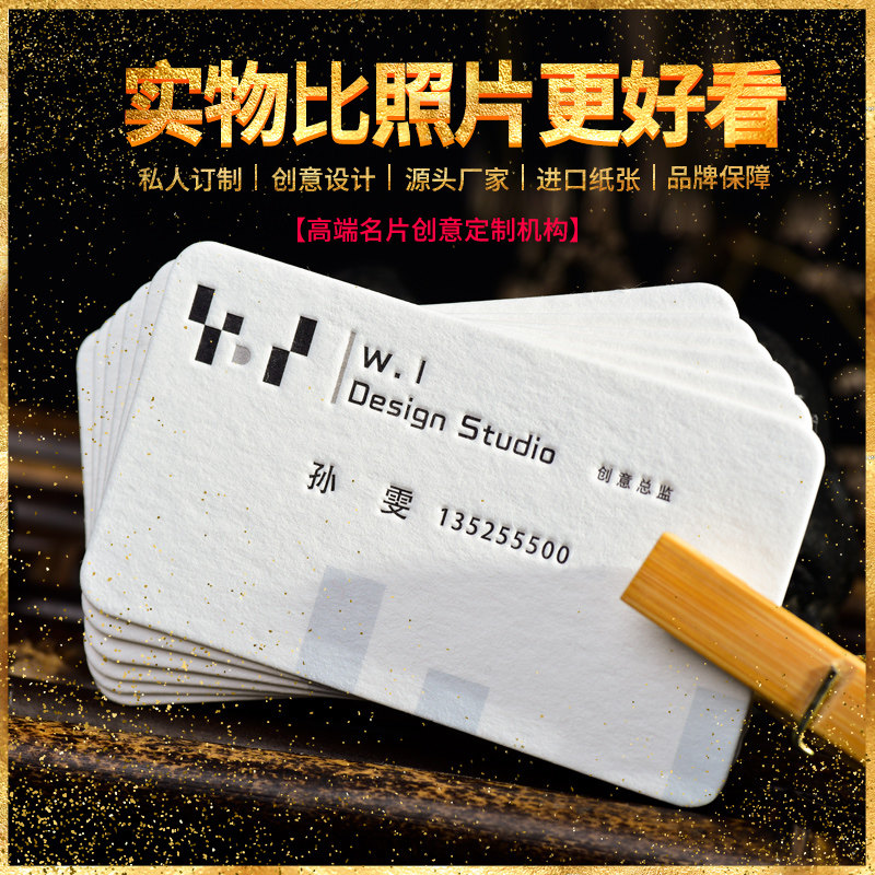 定做高档名片订制制作免费设计双面凹凸印刷个性创意棉纸商务名片