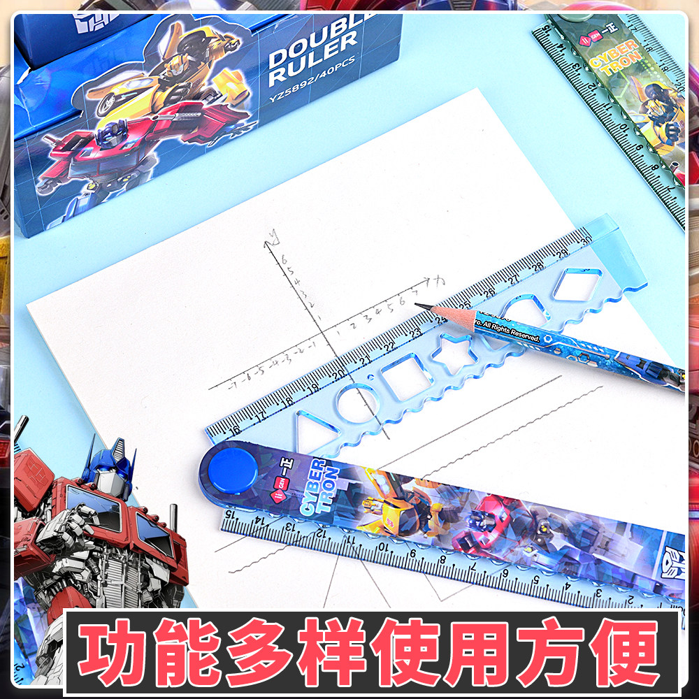 正版变形金刚折叠尺尺子小学生专用一二四年级透明30cm直尺儿童高颜值文具学习用品奖励幼儿园分享小礼品批发