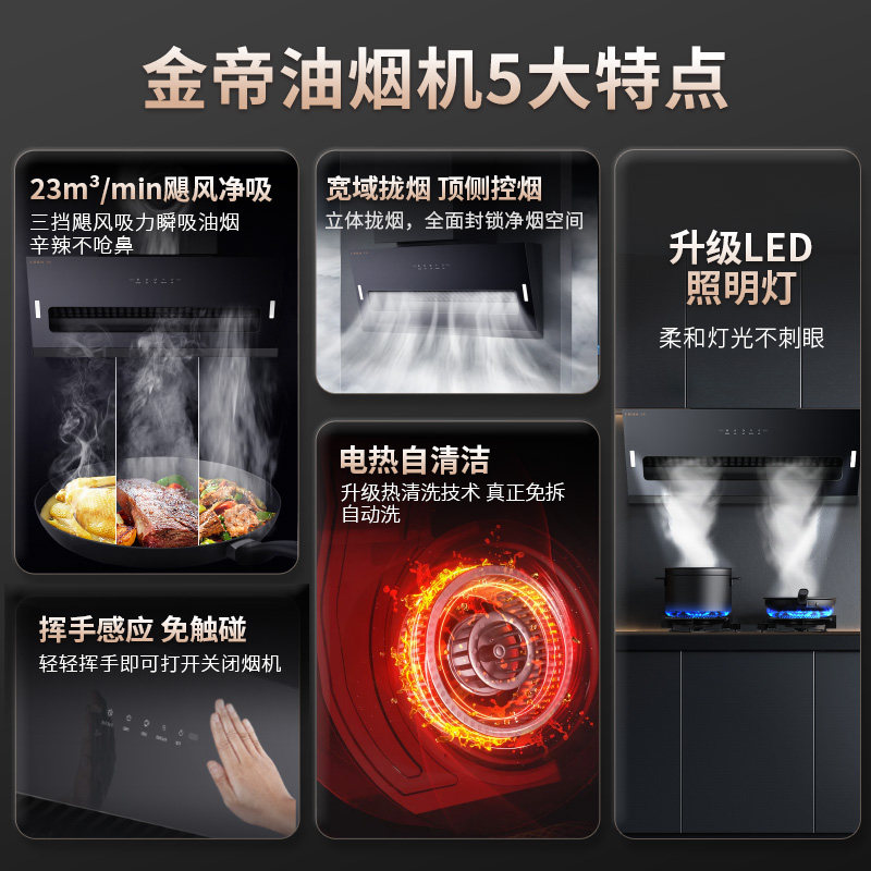 老板油烟机家用挥手自清洗侧吸烟机燃气灶热水器金帝厨房三件套装