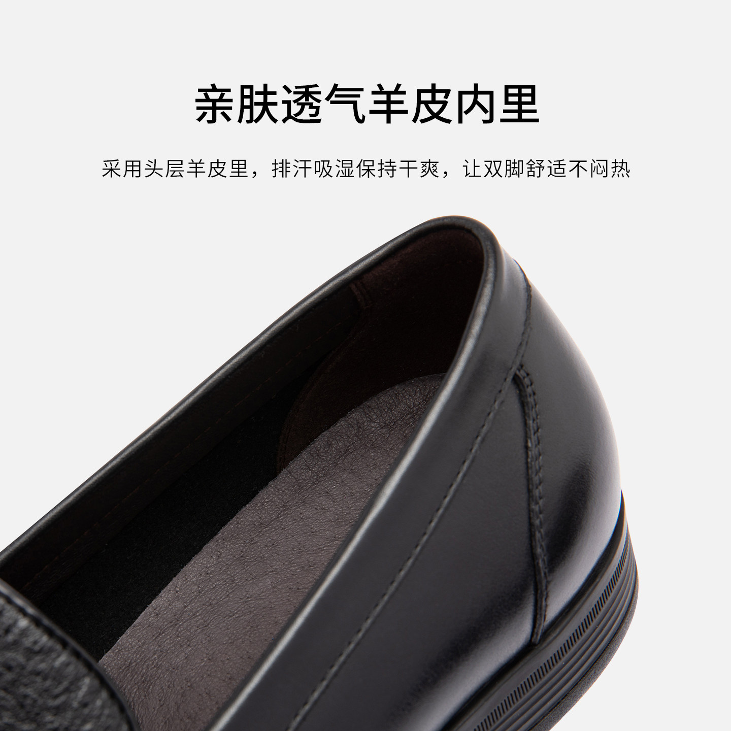 奥康春秋季商务休闲皮鞋男真皮软底乐福鞋舒适一脚蹬套脚爸爸鞋