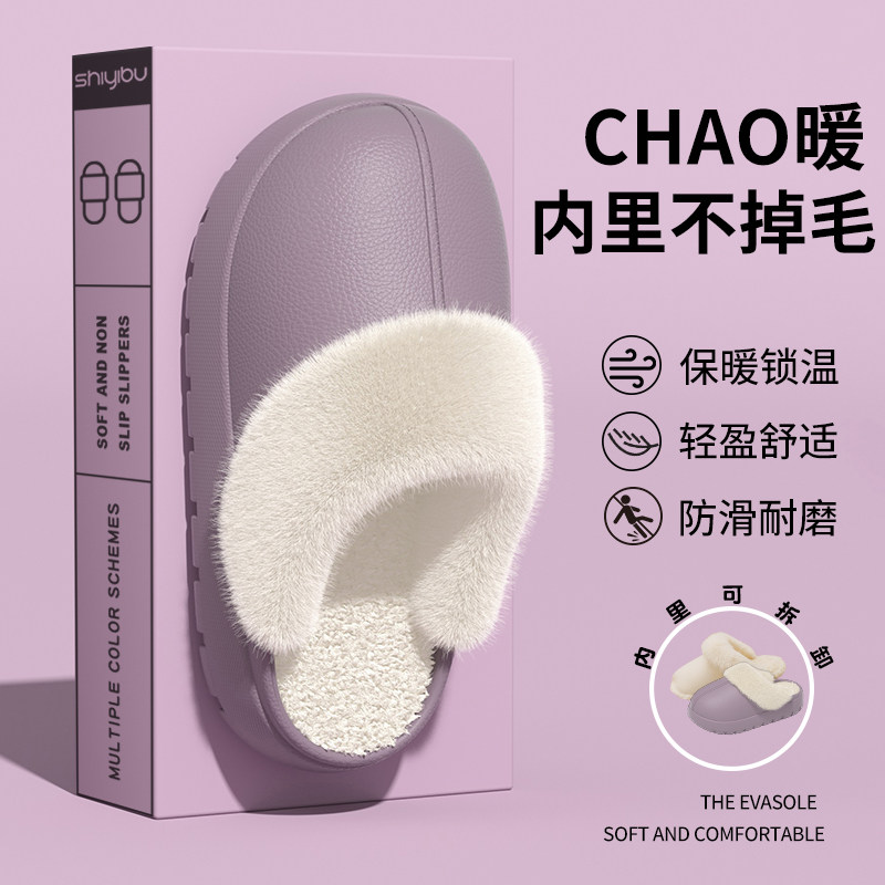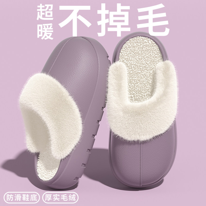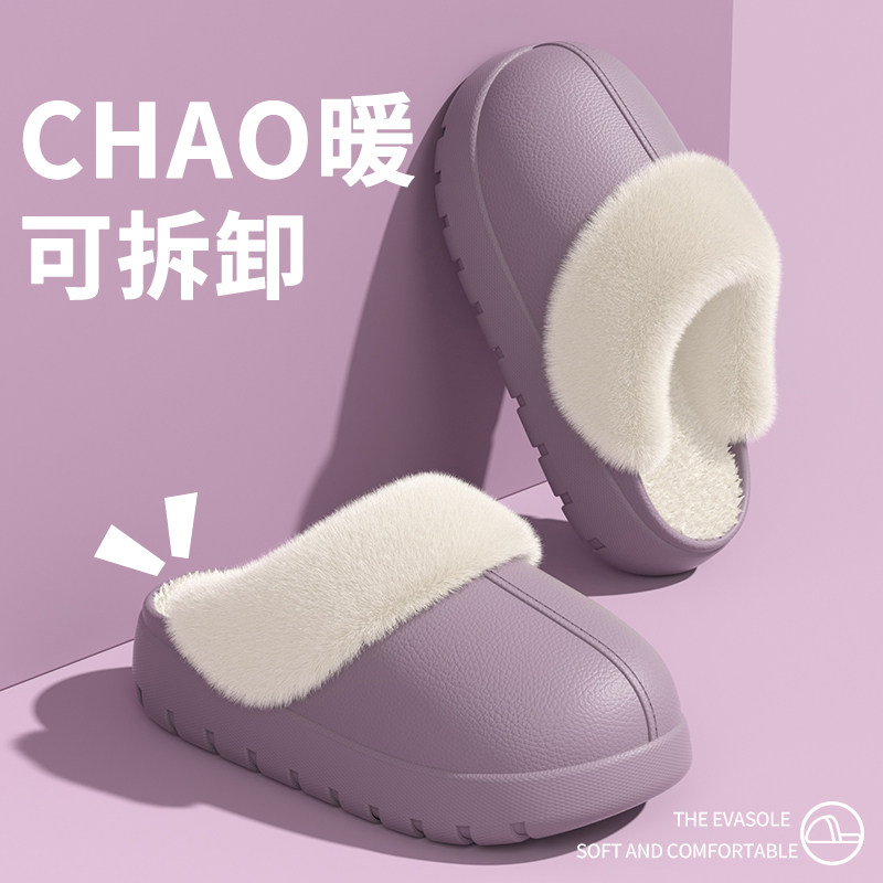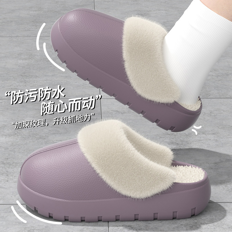 可拆洗棉拖鞋2025新款男女情侣秋冬皮面防滑保暖毛绒防水室内棉鞋