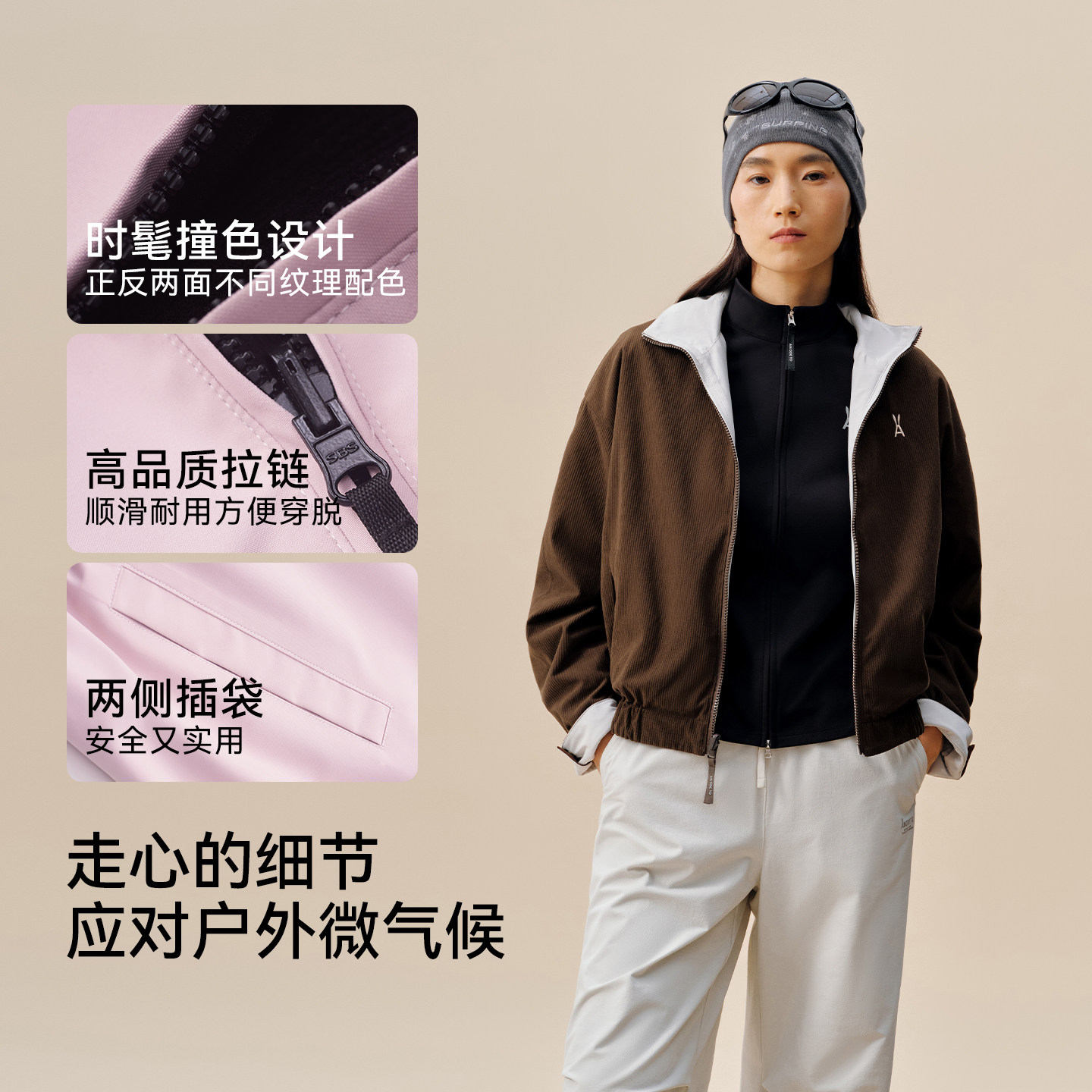 安欧兔哈灵顿灯芯绒【双面穿】冲锋软壳衣
