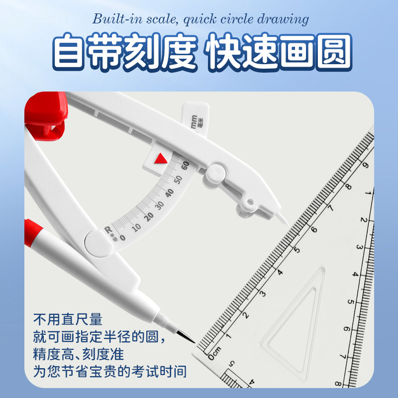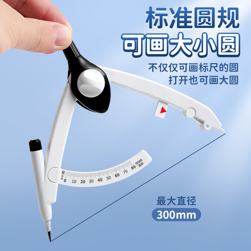 圆规小学生专用三年级数显按动高颜值初中生专用多功能锁距尺规附替换笔芯初高中生考场用六年级专用安全