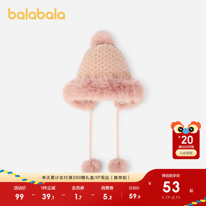 巴拉巴拉儿童帽子女童护耳帽小女孩针织毛绒冬季舒适保暖时尚可爱