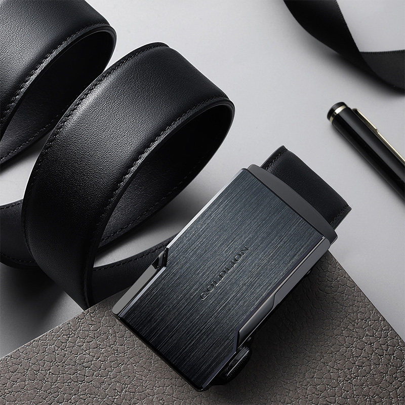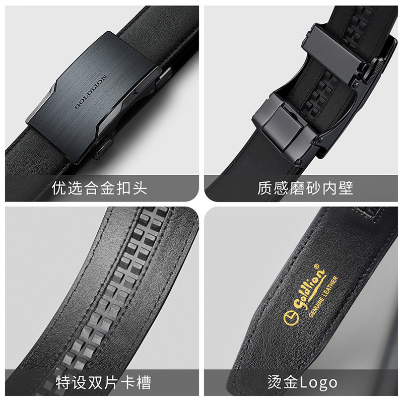 金利来皮带男士2024新款拉丝自动扣防指纹头层牛皮光面商务裤腰带