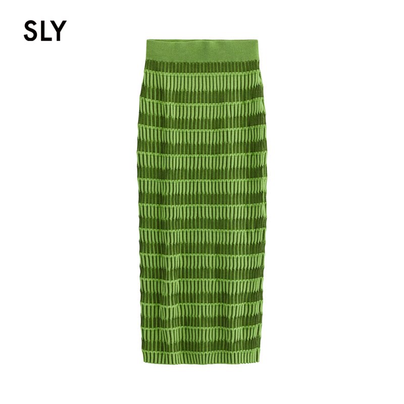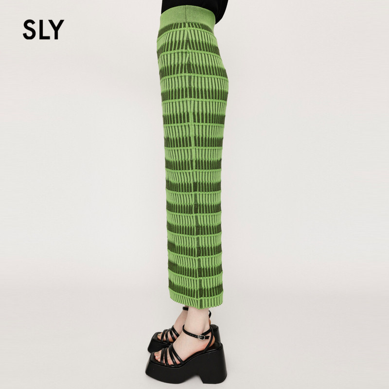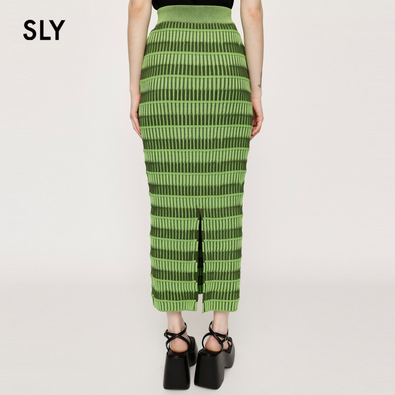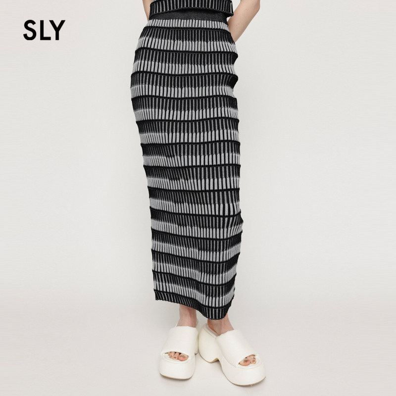 SLY 夏季立体条纹开叉包臀针织半身裙女GSI-