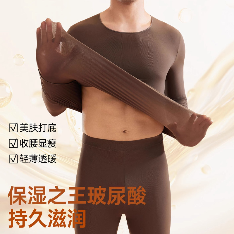 发热无痕保暖套装男士美肤肌底衣隐形面膜秋衣秋裤冬季玻尿酸超薄