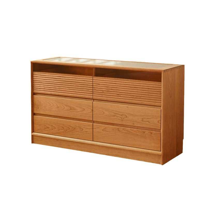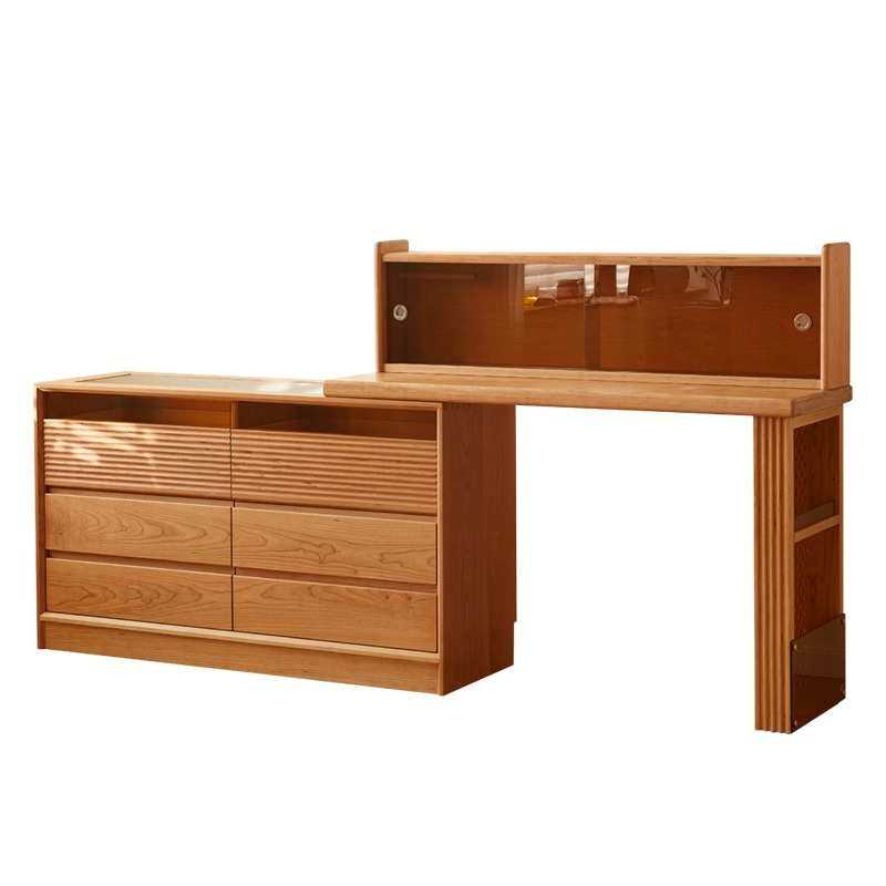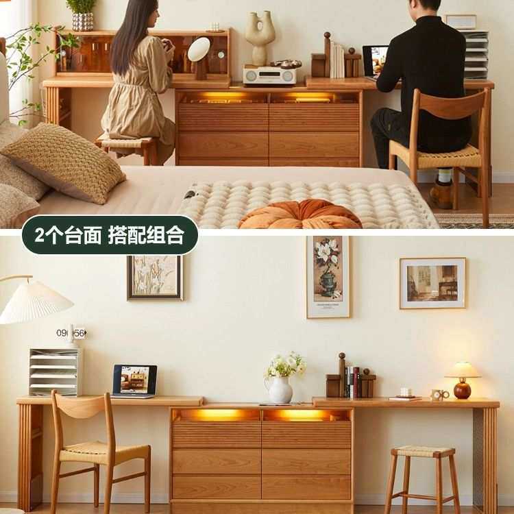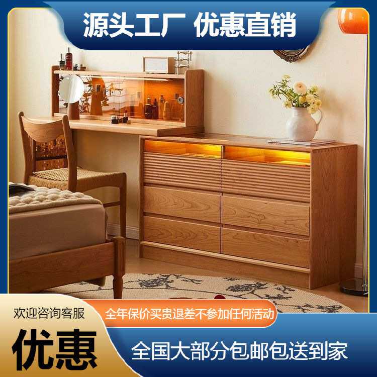 樱桃木实木梳妆台斗柜一体现代储物柜奶油风卧室床尾化妆桌收纳柜