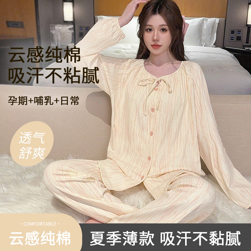 纯棉月子服夏薄款8月份6产后夏天待产妇哺乳孕妇睡衣春夏季家居服