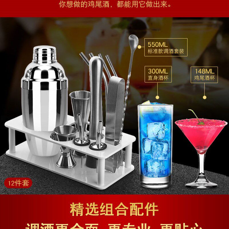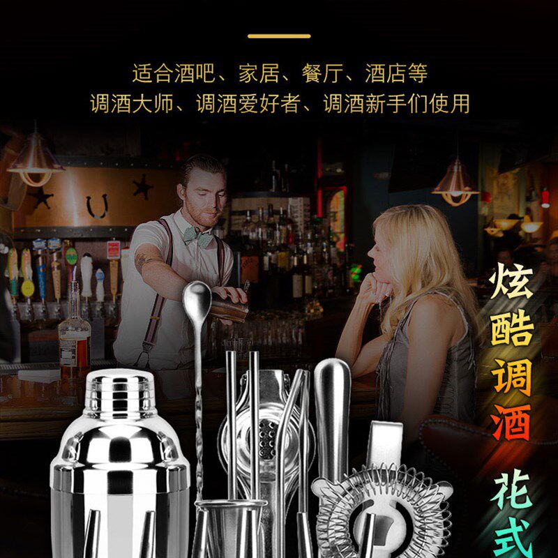 不锈钢调酒套装自学鸡尾酒雪克壶摇酒杯调酒工具雪克杯酒吧调酒器