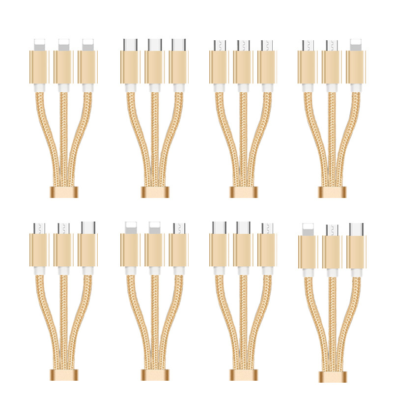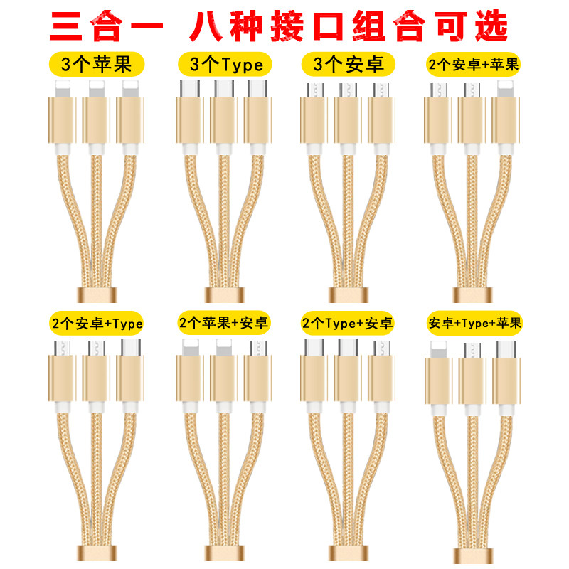 拾本双头安卓一拖三数据线全安卓充电器3三合一适用华为荣耀3个type-c手机快充线多功能头一分苹果充电线多头