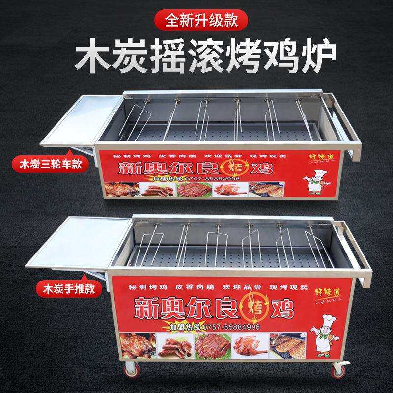 越南摇滚烤鸡炉商用摆摊自动旋转奥尔良鸡腿车木炭烤箱烧烤炉烤鸡