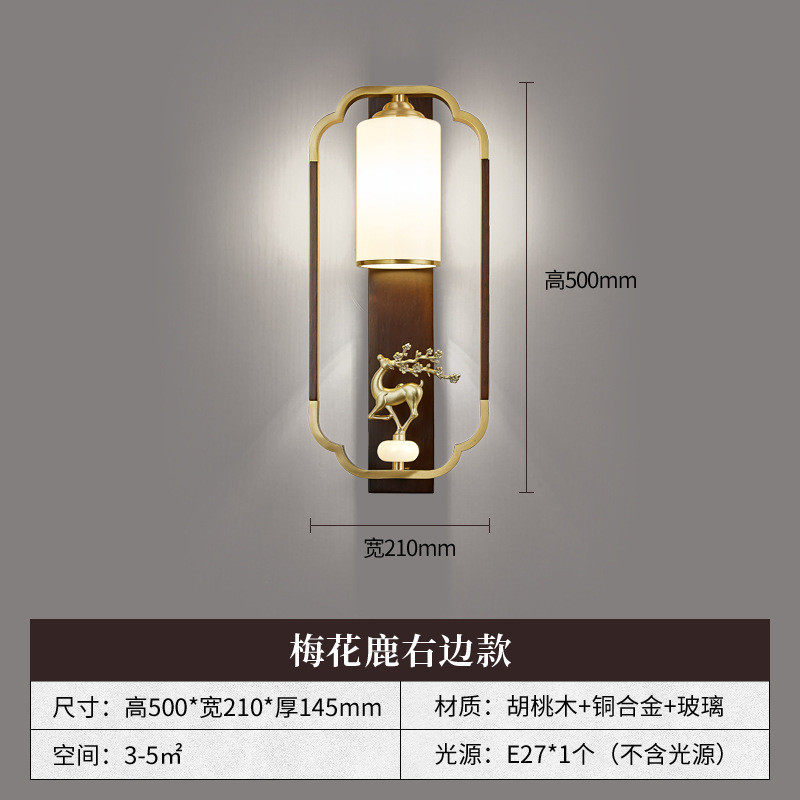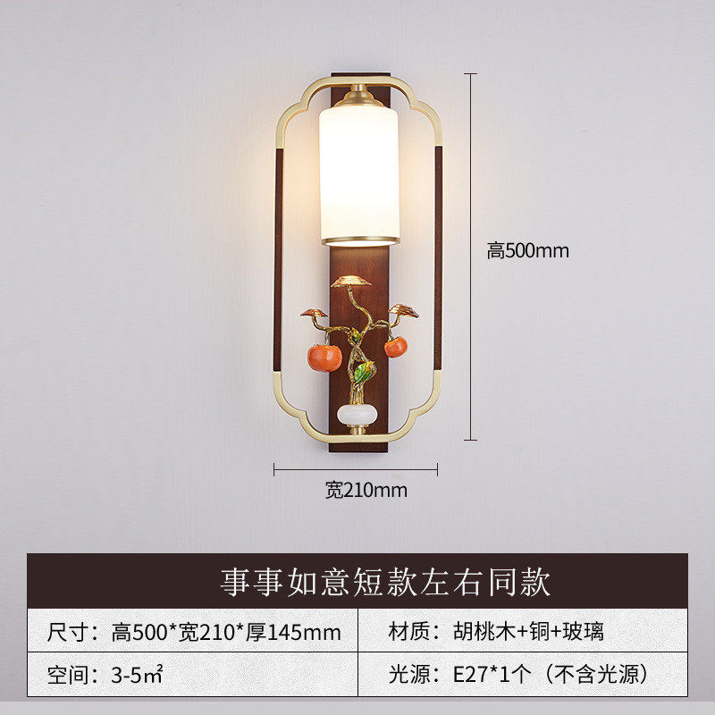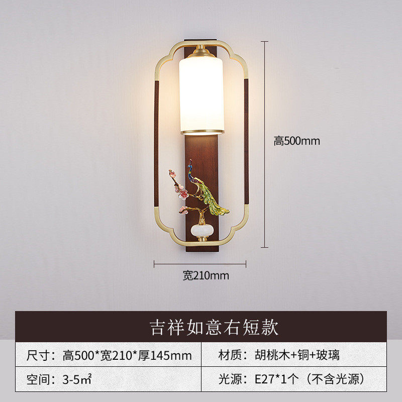 全铜新中式壁灯客厅电视背景墙灯珐琅彩走廊卧室床头中国风实木灯