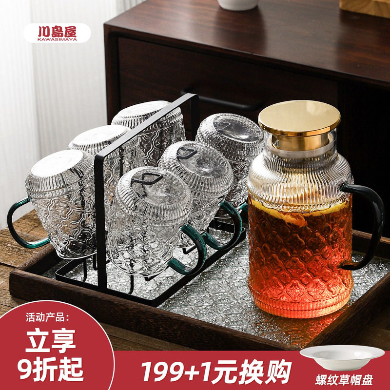 川岛屋海棠花玻璃冷水壶凉水壶耐高温家用大容量凉茶壶凉水杯套装