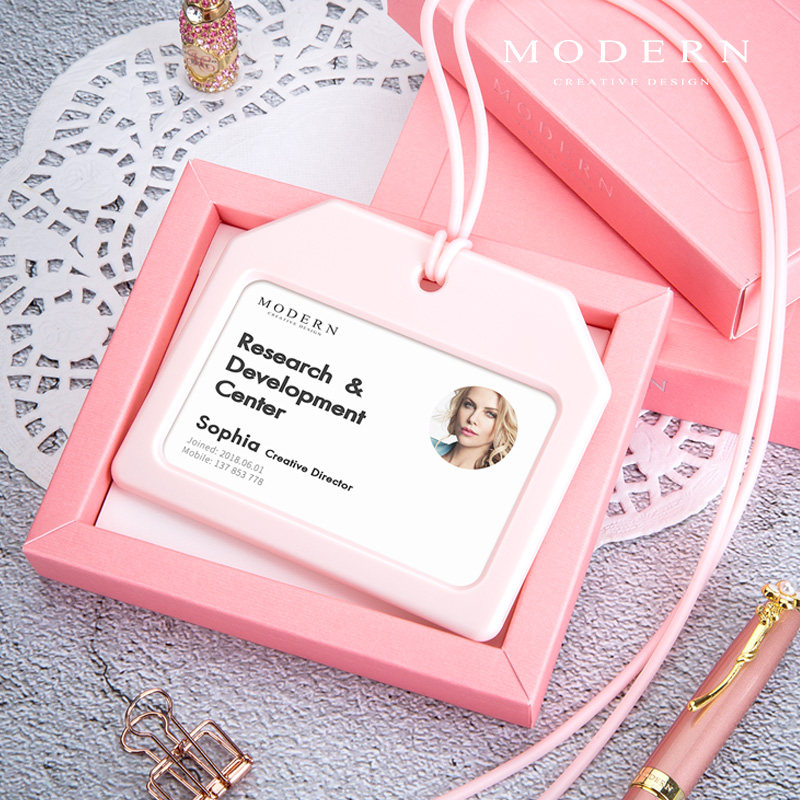 MODERN超薄马卡龙系工作证工牌卡套白领卡套胸牌高档挂脖绳证件套