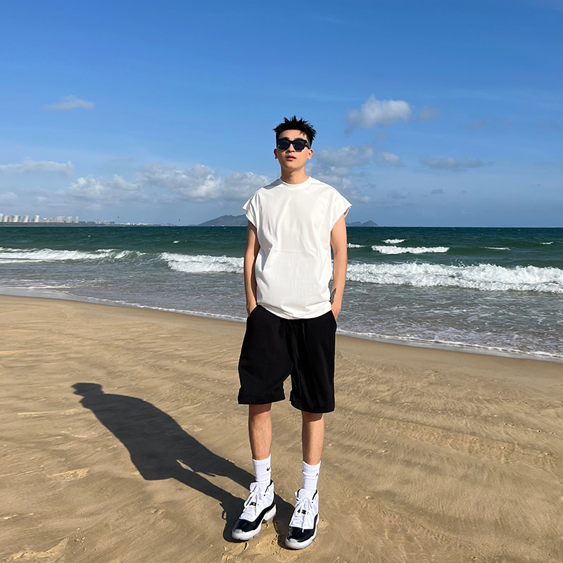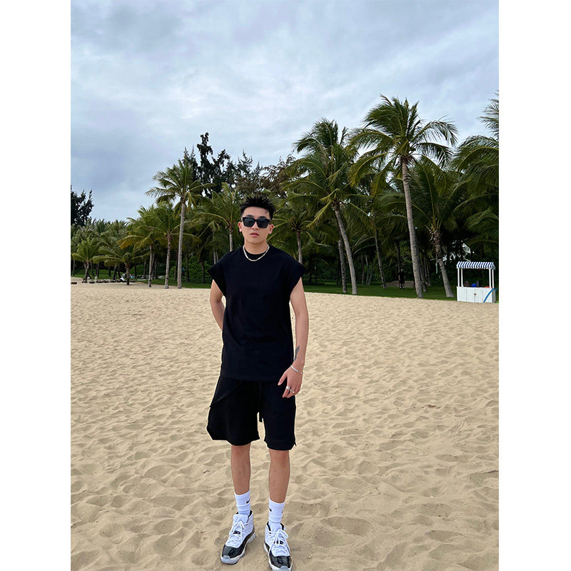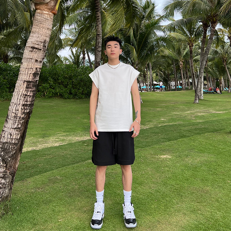 SANBAI 叁佰男士坎肩背心夏季户外休闲运动马甲宽松纯棉无袖T恤潮