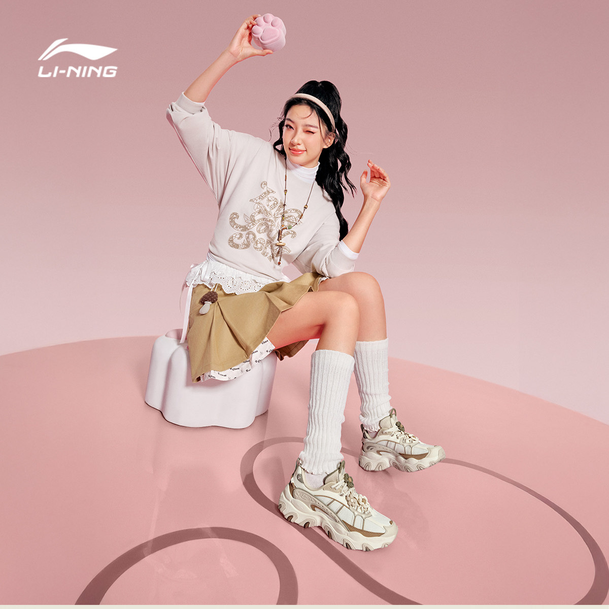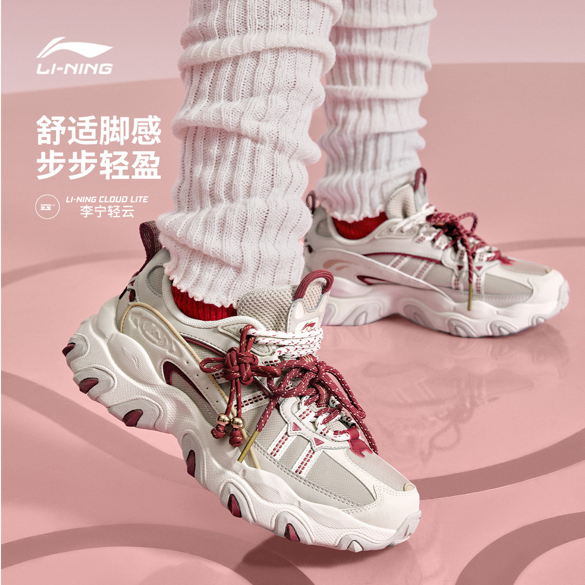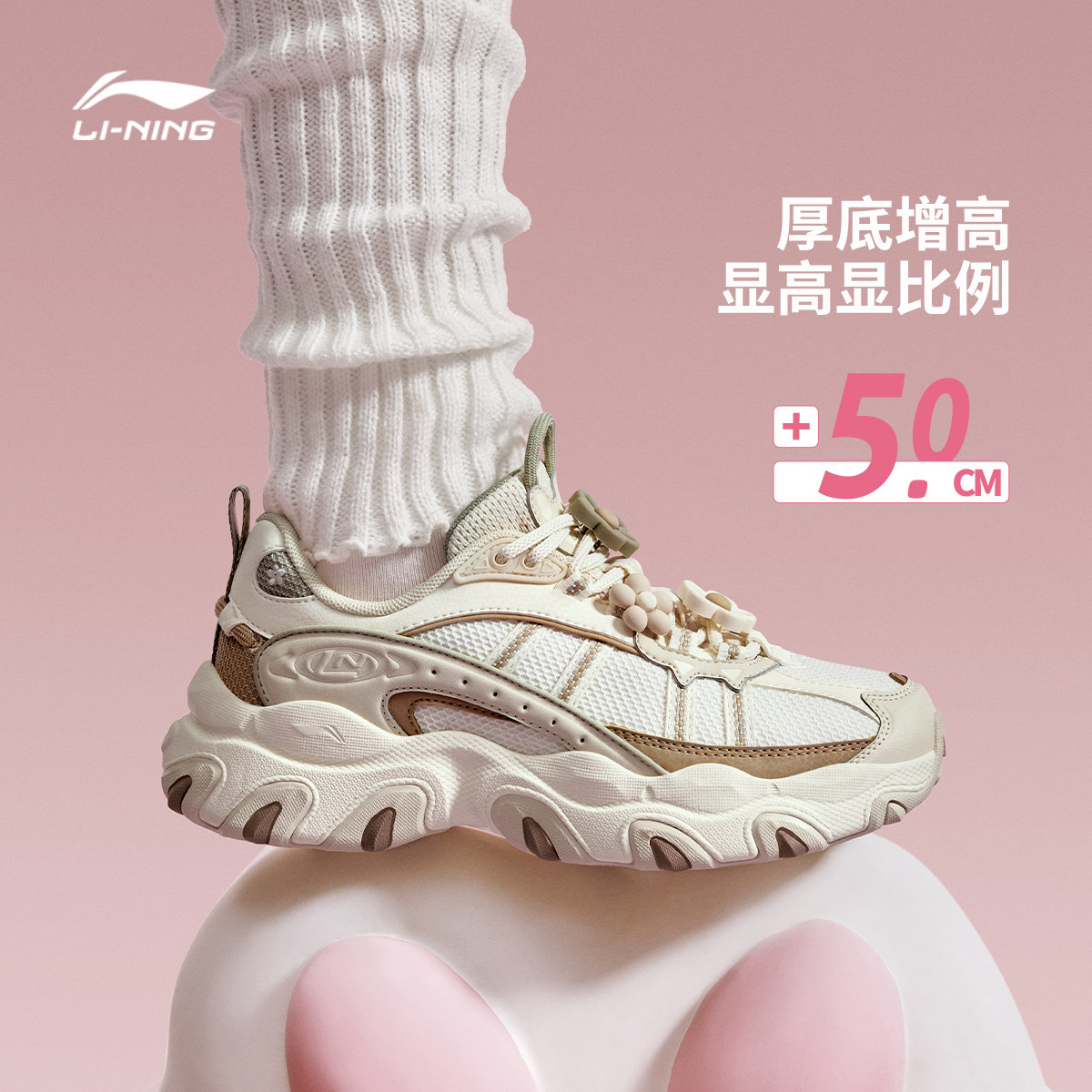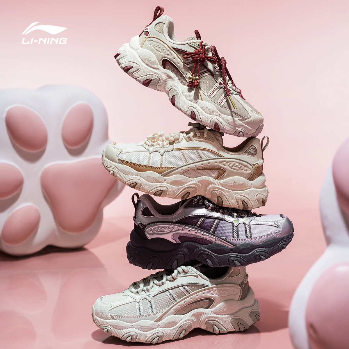 李宁猫爪LITE 3丨休闲鞋女鞋新款复古老爹鞋厚底增高轻质运动鞋子