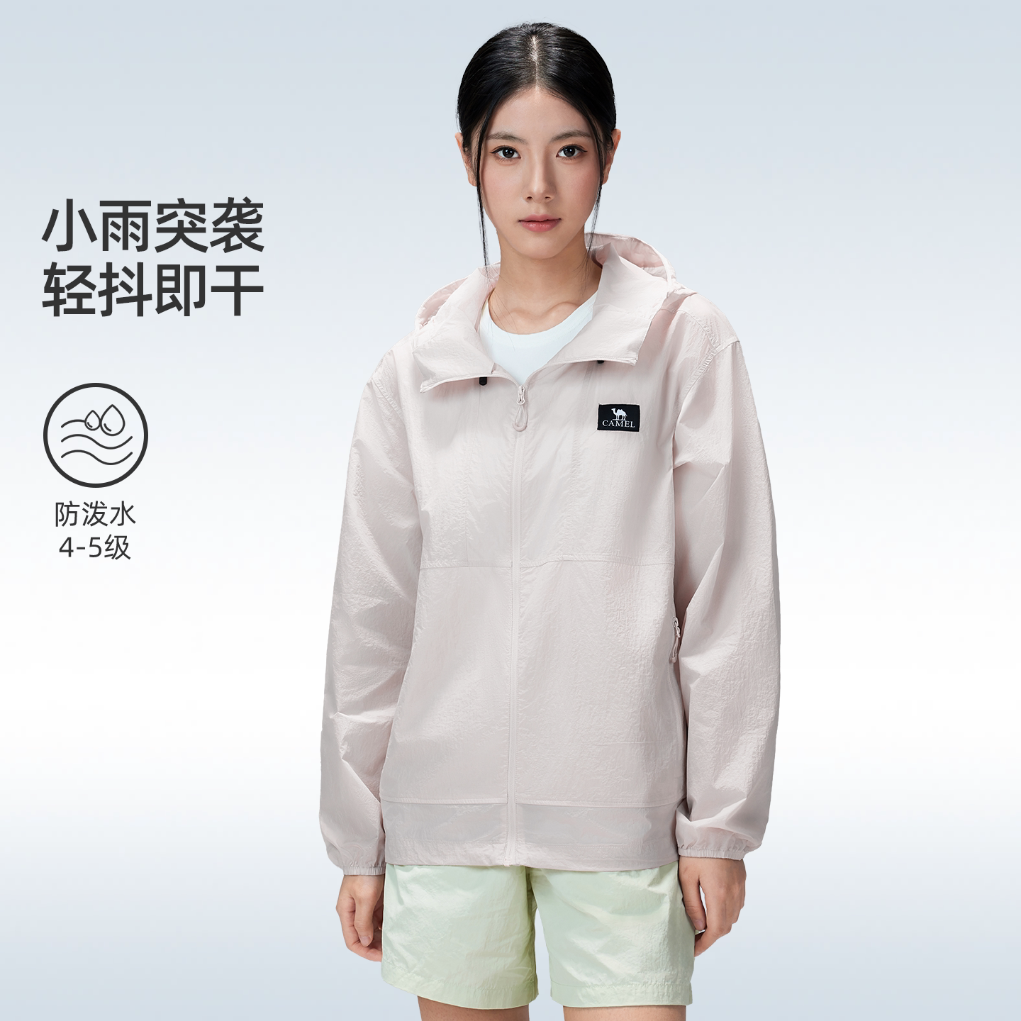 骆驼雪壳防晒衣粉色女冰感透气运动风衣外套户外夹克轻薄皮肤衣男