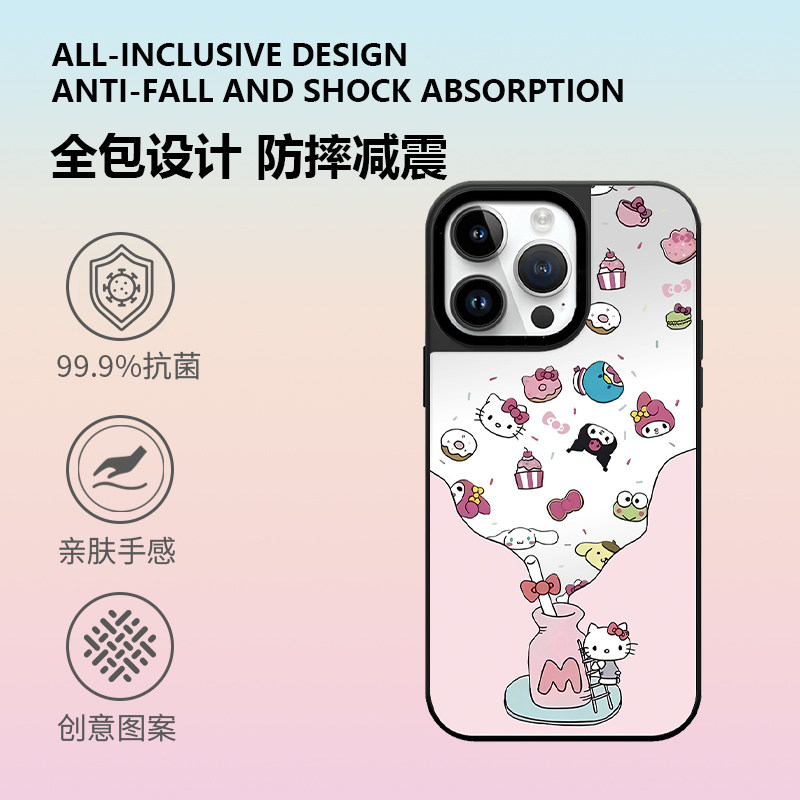 新款粉色奶瓶KT猫适用于苹果17Air镜面磁吸手机壳卡通透明防摔高级感iPhone16Promax/15/14/13/12系列保护套