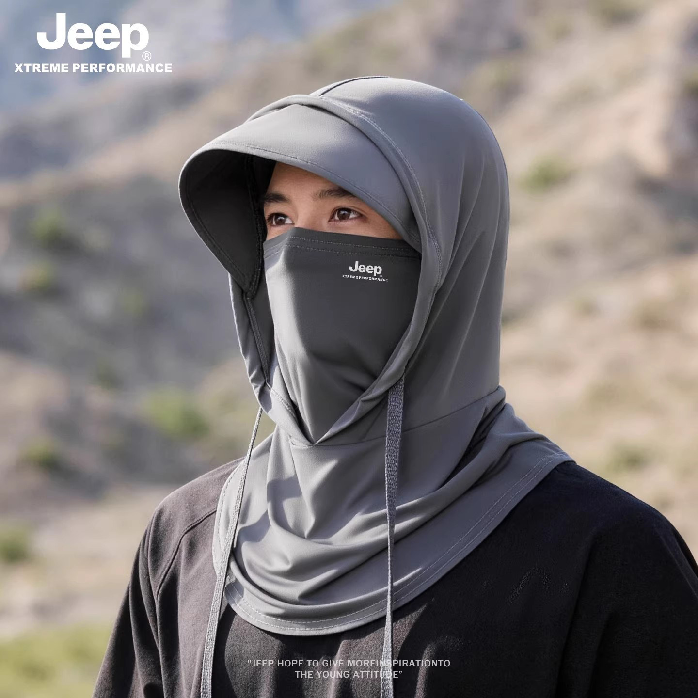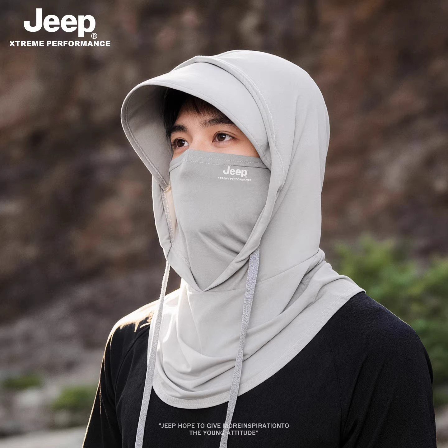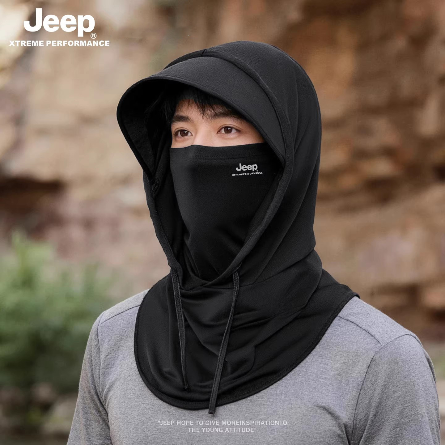 jeep吉普夏季男士防晒帽遮全脸护颈骑行头盔内胆帽子男冰丝面罩夏