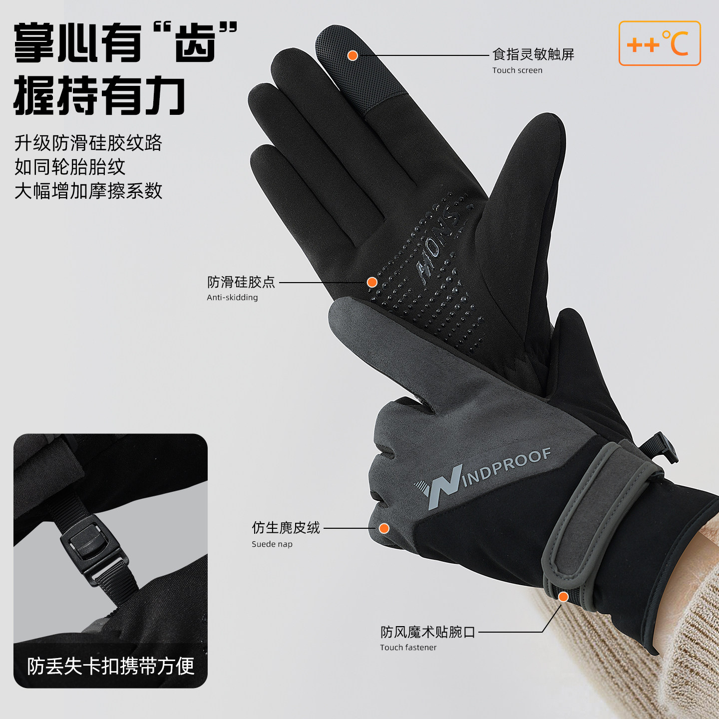 触屏加绒手套骑行户外运动加厚男士2026新款冬保暖御寒可防风防水