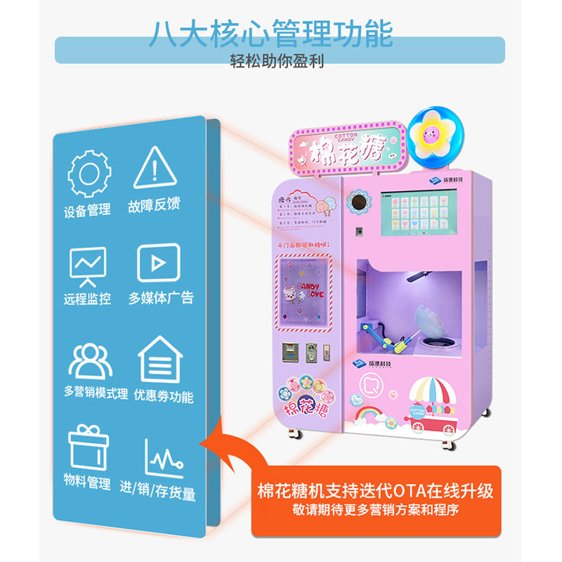 扬漫科技景区游乐场儿童商用全自动花式电动棉花糖自助售卖机