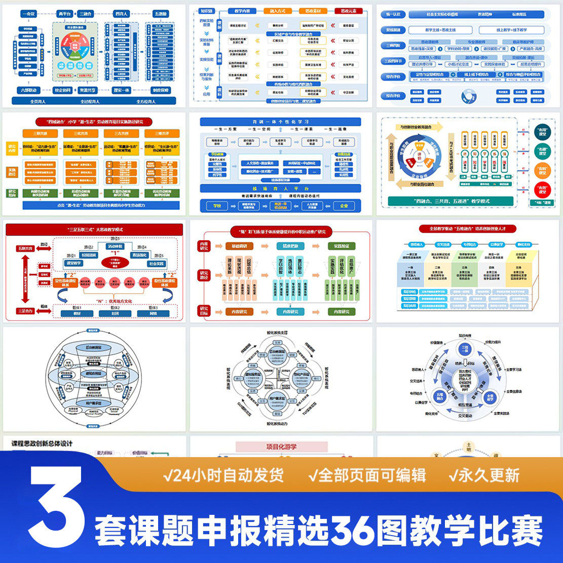 课题申报精选36图教学能力比赛PPT模板结题架构设计图十二图12图