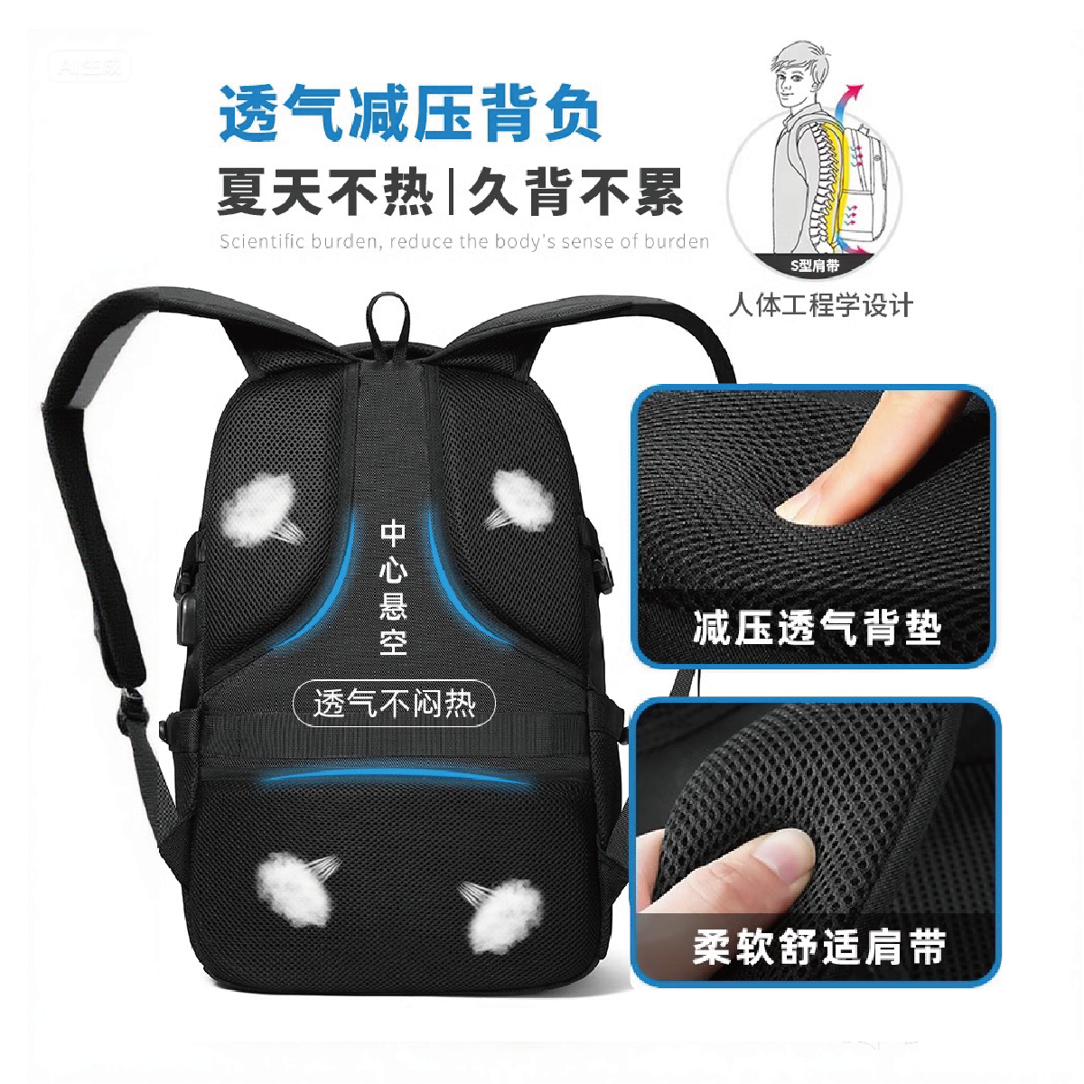 双肩包男士旅行背包电脑出差高中初中生大学生书包超大男生大容量