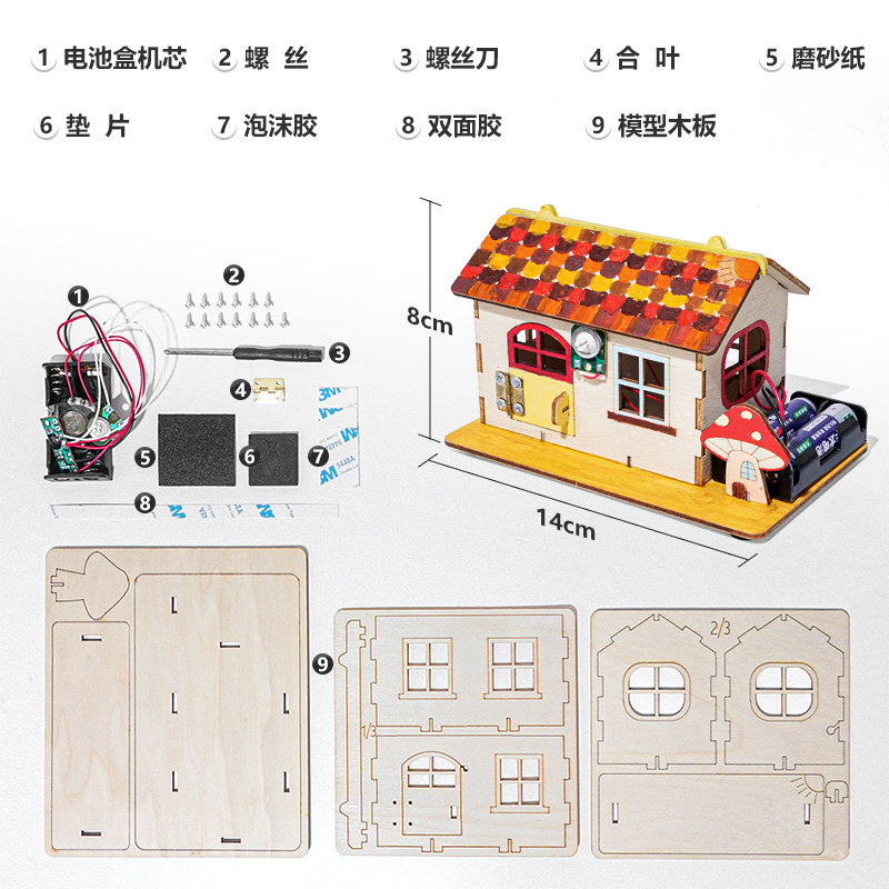 门铃小屋 手工DIY科技小制作物理电路叮咚木屋小学STEM材料包教具