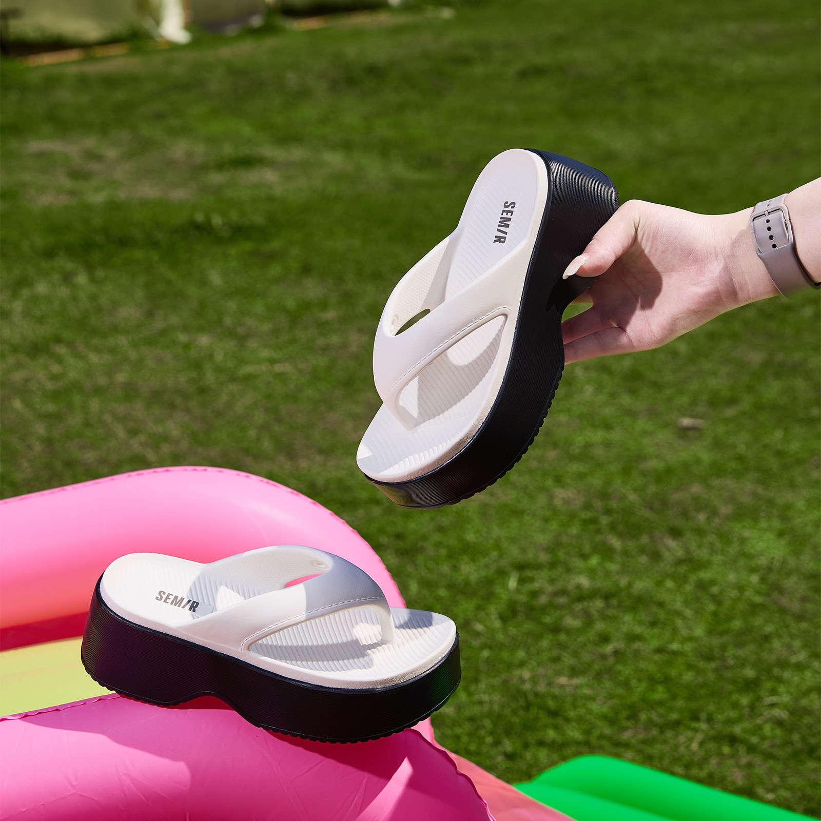 Semir女鞋拖鞋2026年夏季新款厚底夹趾坡跟增高海边沙滩人字拖