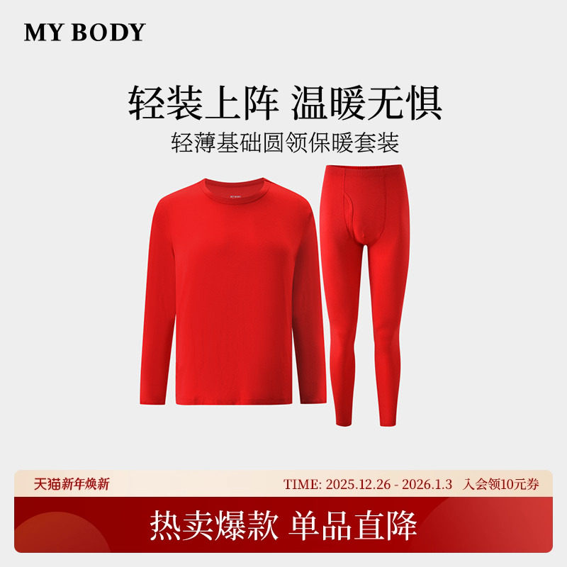 商场同款MYBODY秋季新款男士保暖内衣基础圆领秋衣莫代尔保暖套装