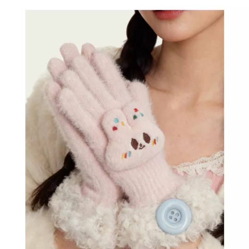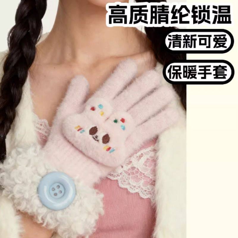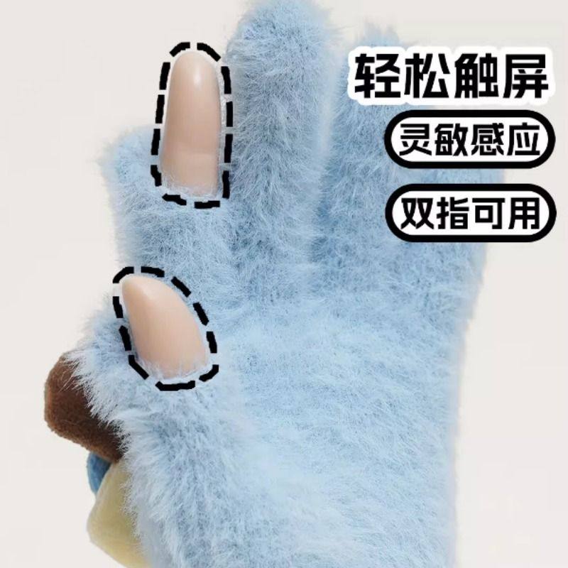 SIMS女保暖手套毛绒防寒分指冰淇淋色仿貂绒冬季软糯羊毛拼接甜美