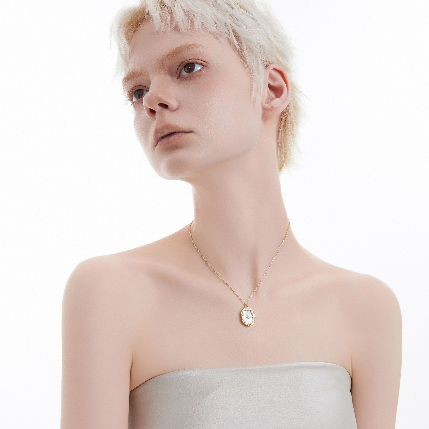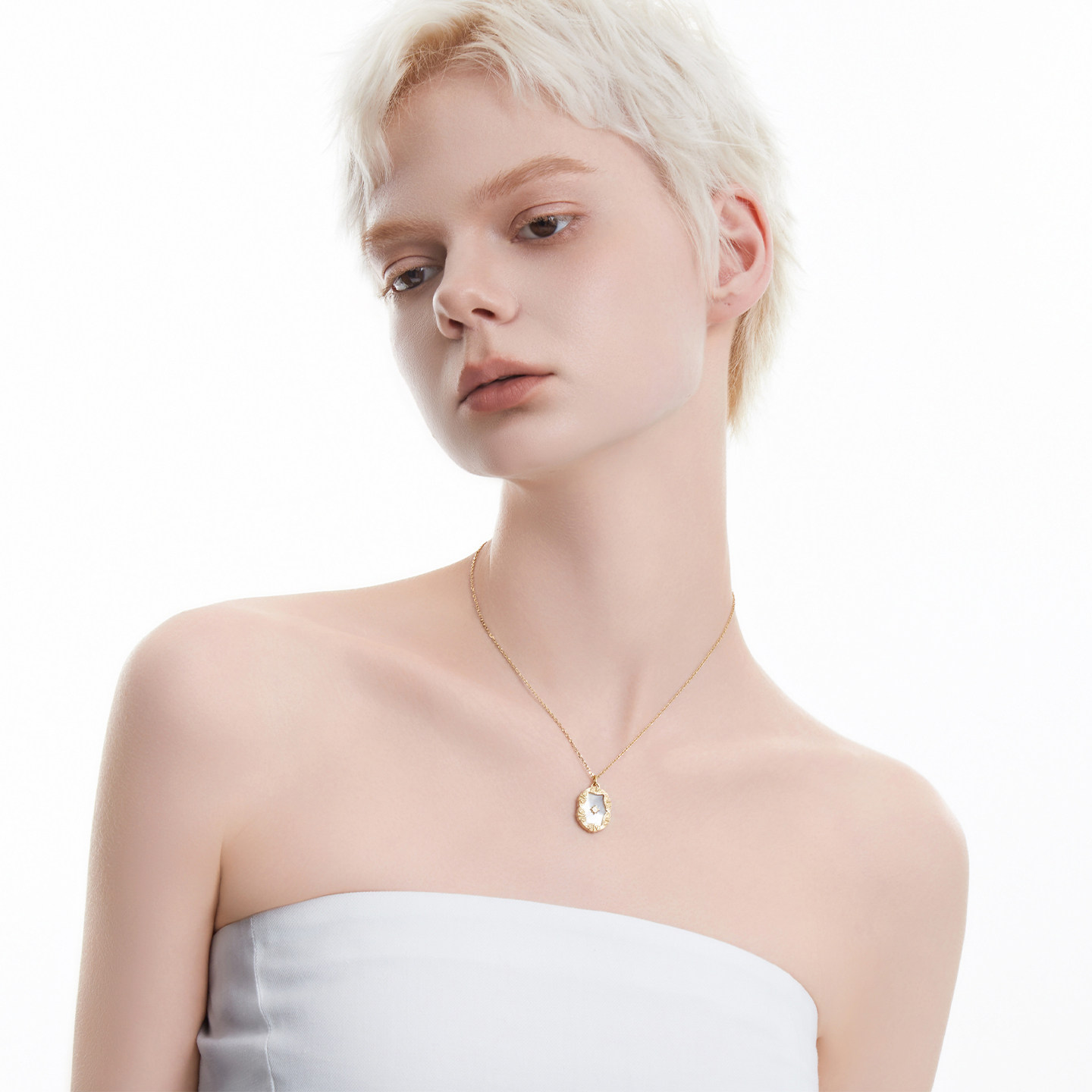 AmberLollipop天然白贝母项链女方形吊坠锁骨链小众颈链百搭配饰