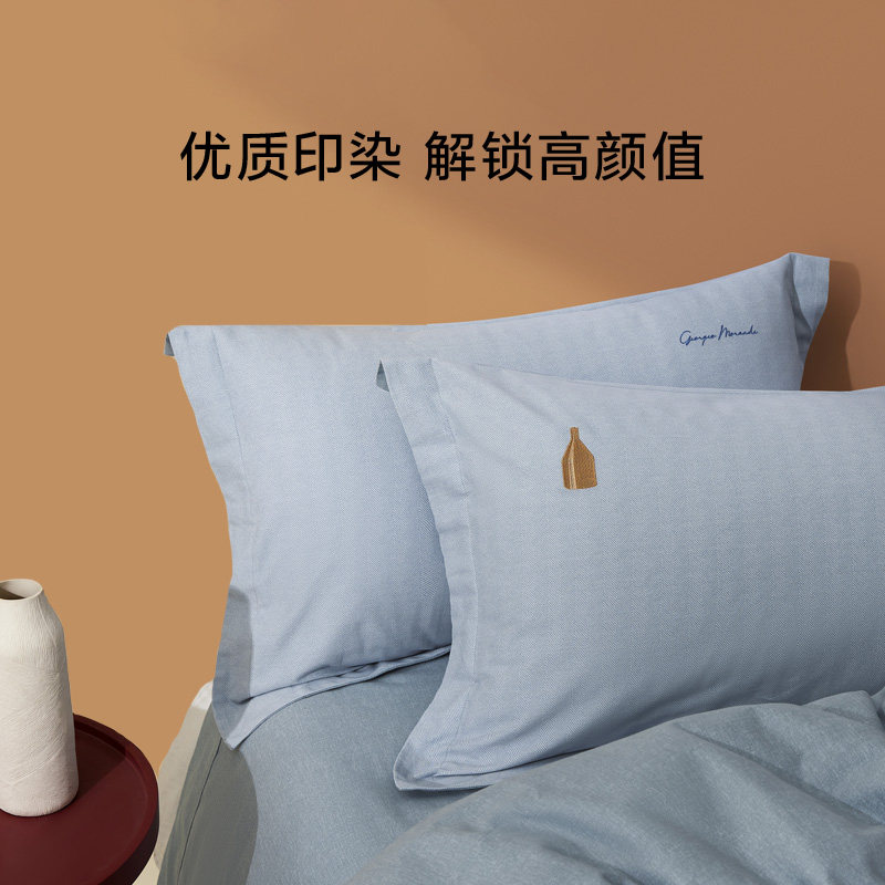 A类水洗棉双层纱四件套被罩非全棉纯棉床单人学生宿舍被套三件套