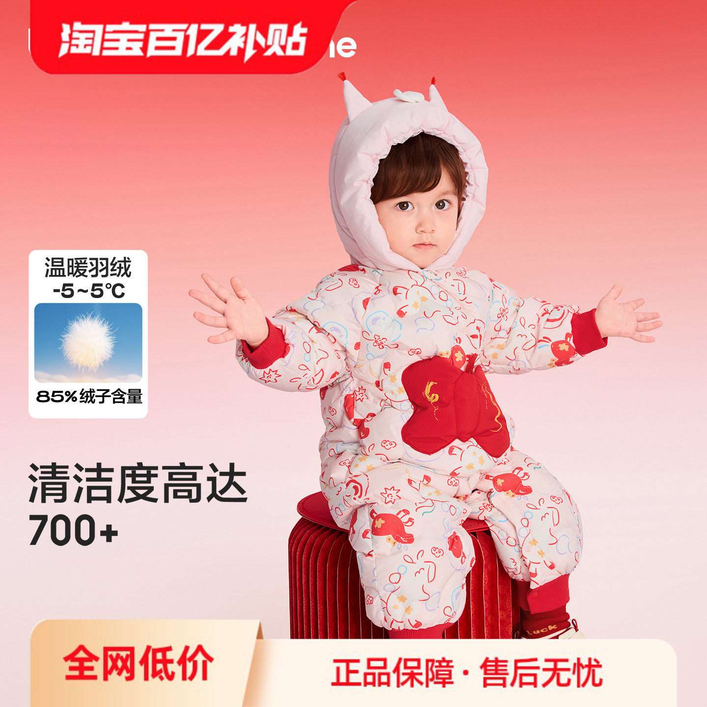 巴拉巴拉童装儿童婴儿新生儿羽绒连体衣2026新款冬装宝宝衣服红色