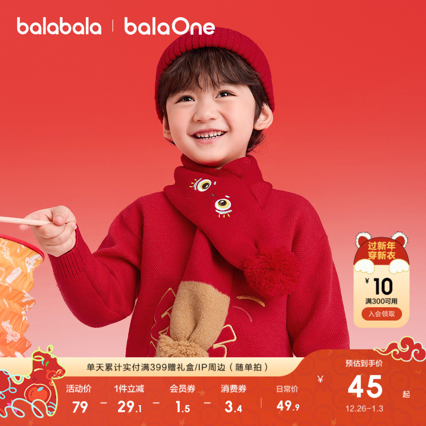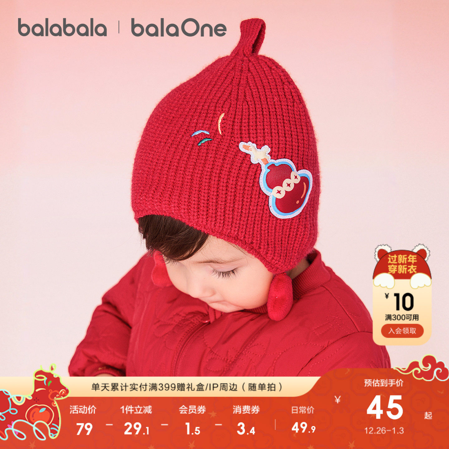 巴拉巴拉儿童帽子男女童2025年新冬装宝宝保暖拜年红色针织帽喜庆
